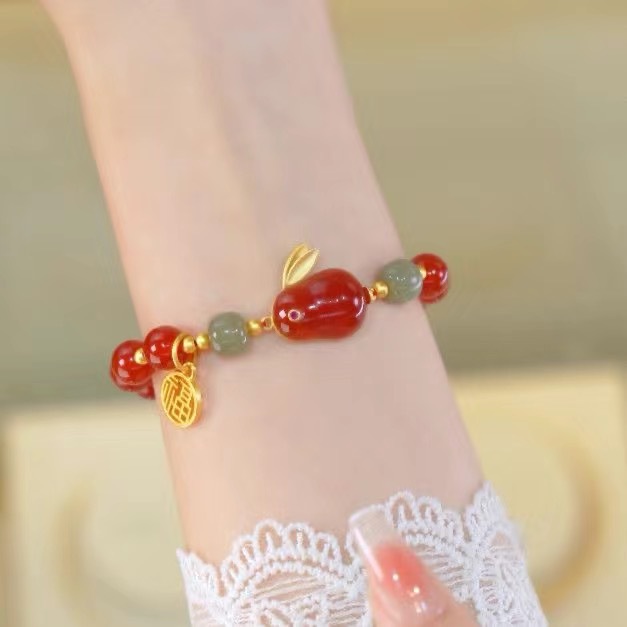 new red beads fu character jade hare bracelet