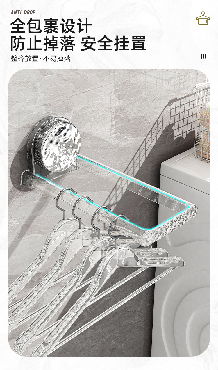 Songtai Suction Cup Hanger Storage Artifact Punch-Free Balcony Clothes Hanger Hanging Rod Retractable Wall Hanging Clothes Storage