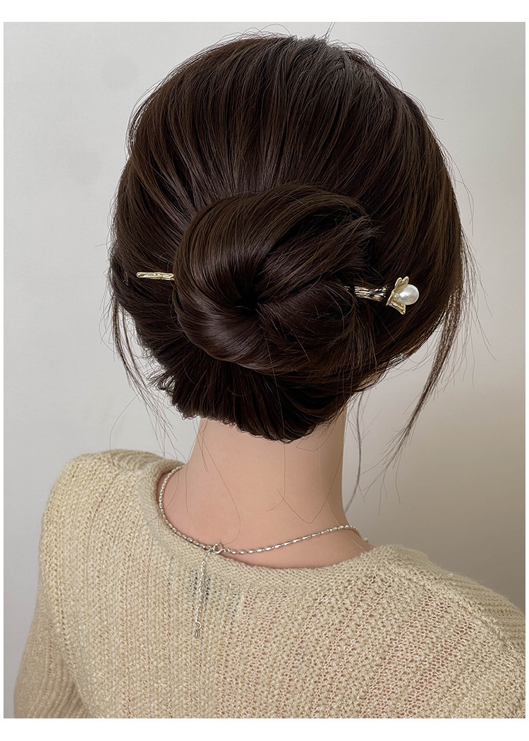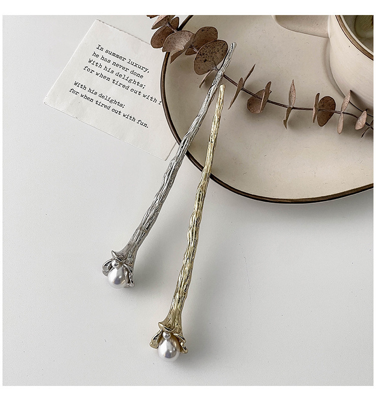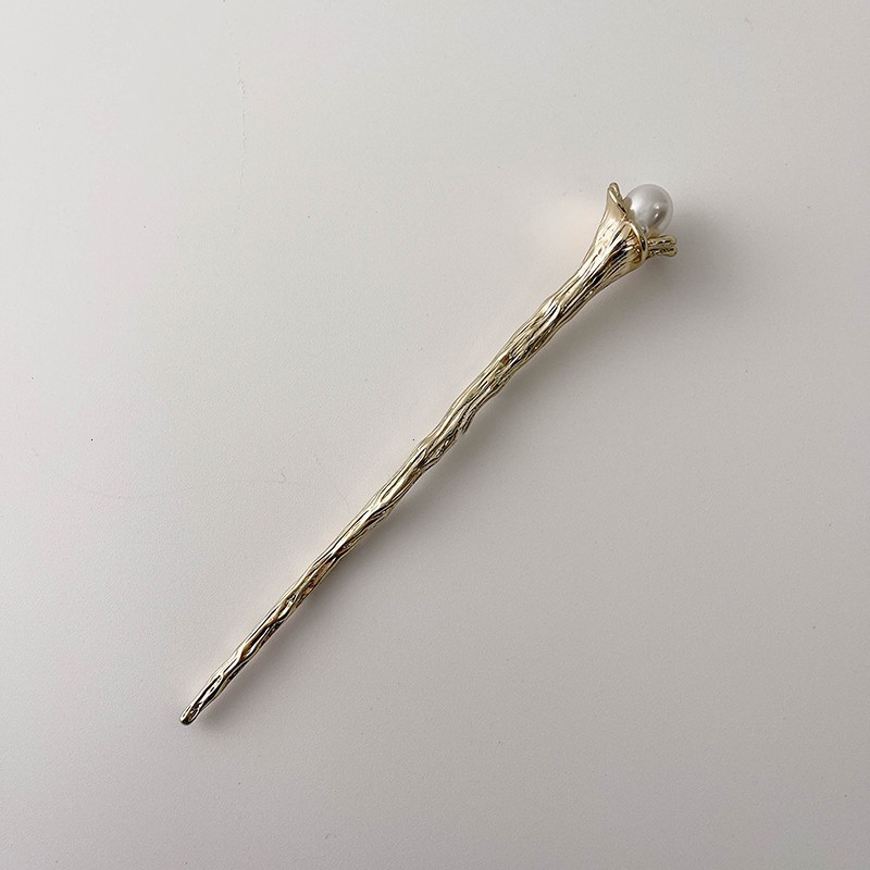 1# tree pattern pearl hairpin-(golden)