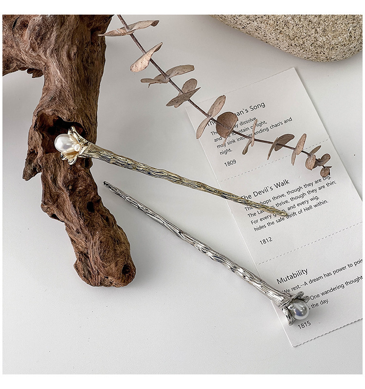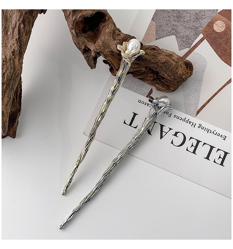 2# tree pattern pearl hairpin-(silver)