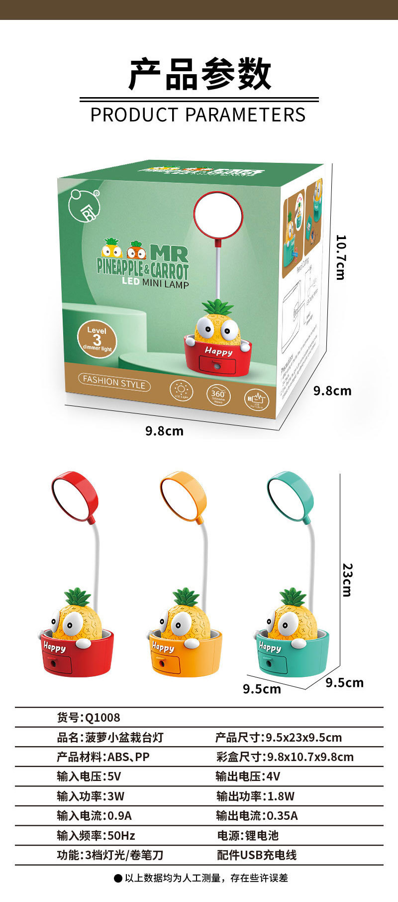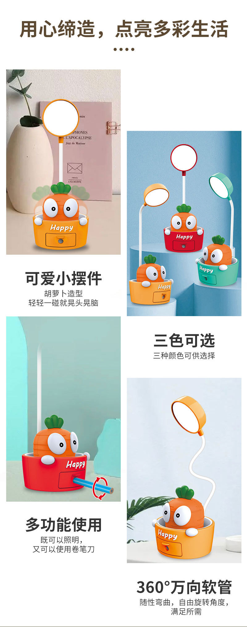 foreign trade exclusive for elementary school students creative small pot plant table lamp three-speed dimming pencil sharpener dormitory usb reading lamp 中文版