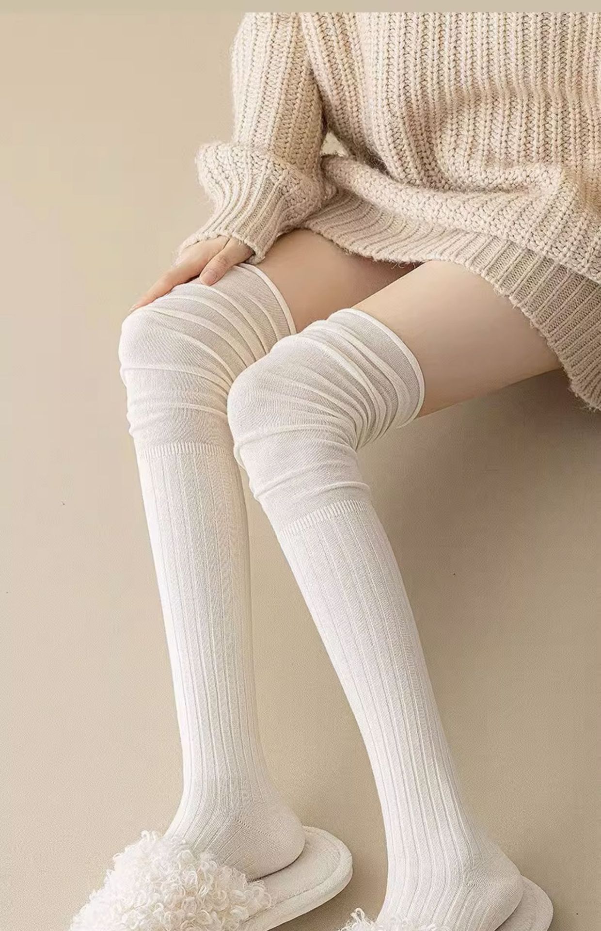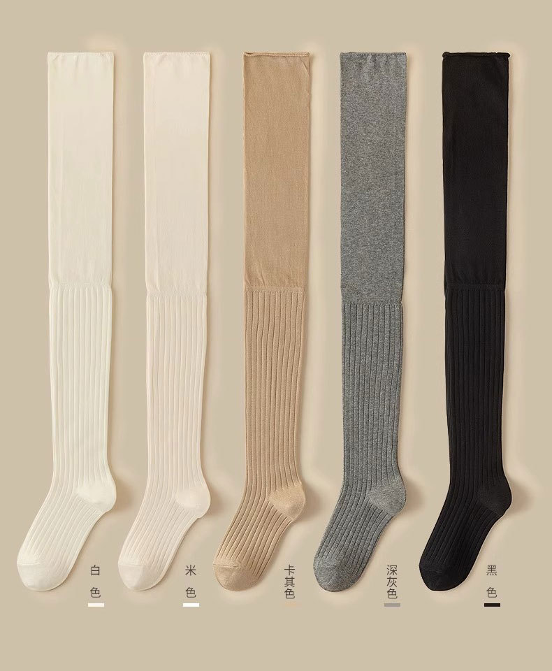Single-double knee-length socks made of 55 grams of polyester-cotton blend, and 70 grams of pure cotton. The polyester-cotton blend is slightly more transparent at the knees compared to pure cotton. Default OPP packaging is available. Welcome wholesale and drop-shipping customers to consult for cooperation.