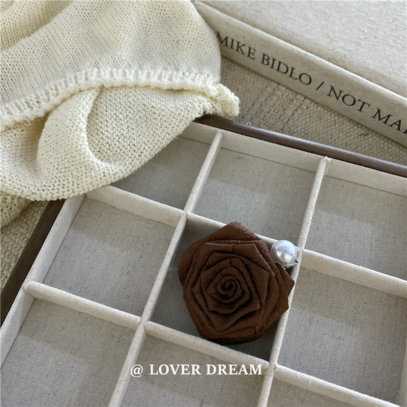 brown rose pearl national style hair ring