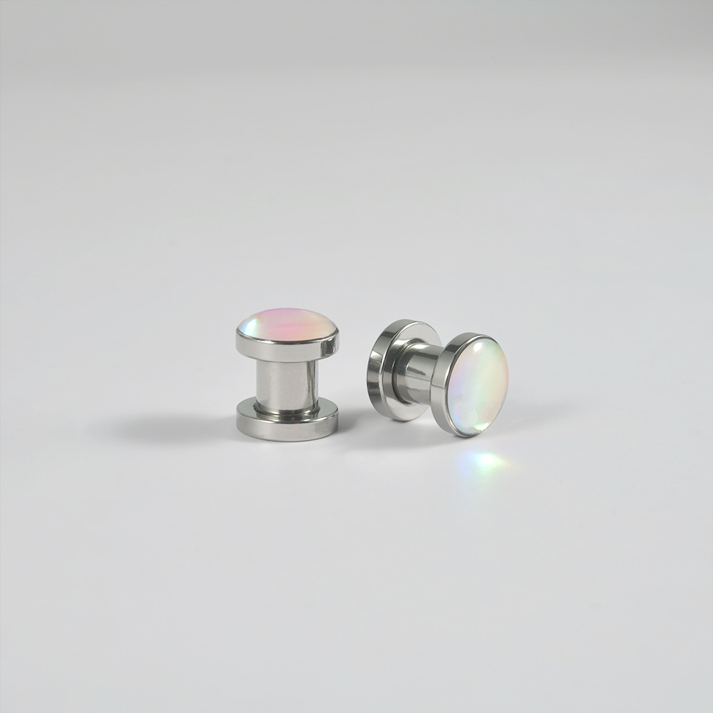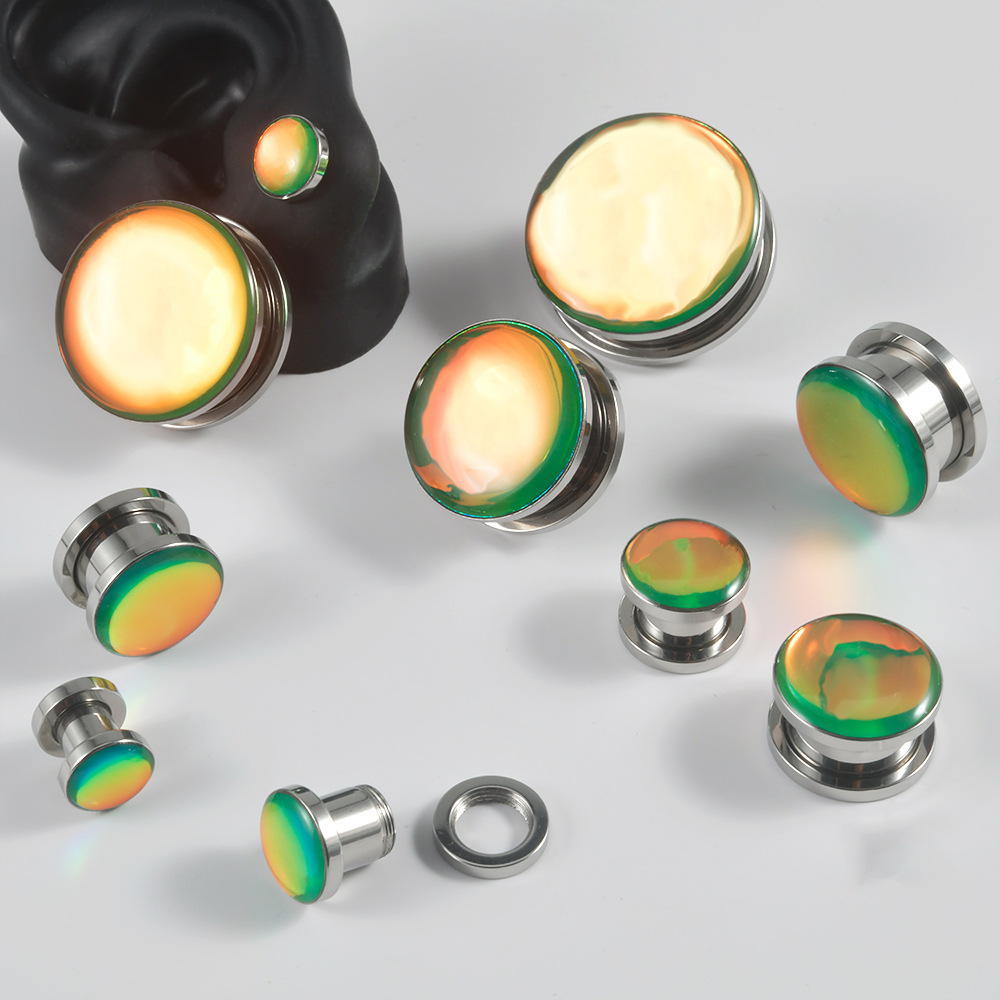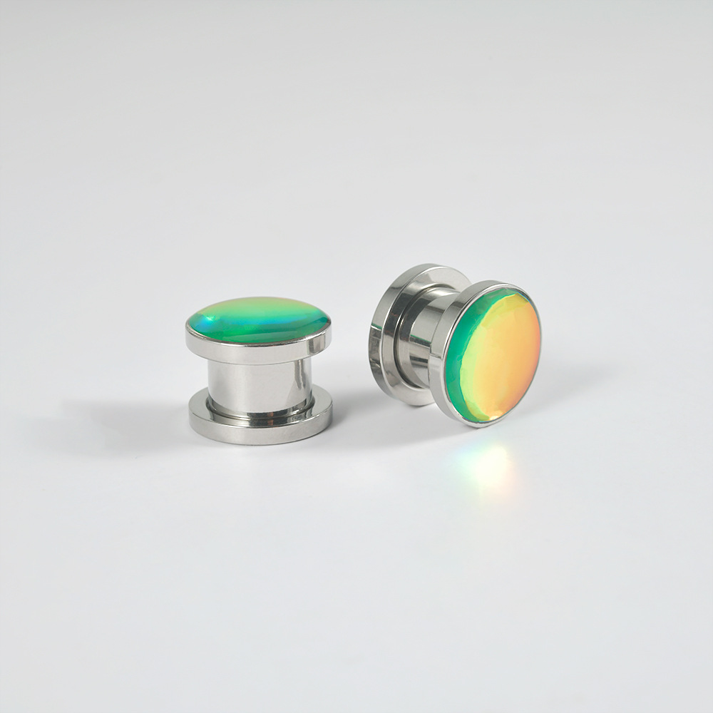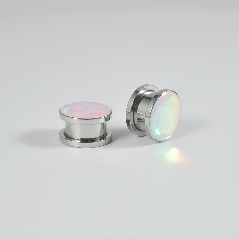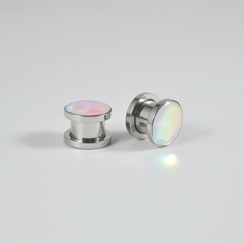 .Name: Cross-border circular flash color earlobe stainless steel flash gradient sliding wheel ear expansion external thread ear expansion jewelry