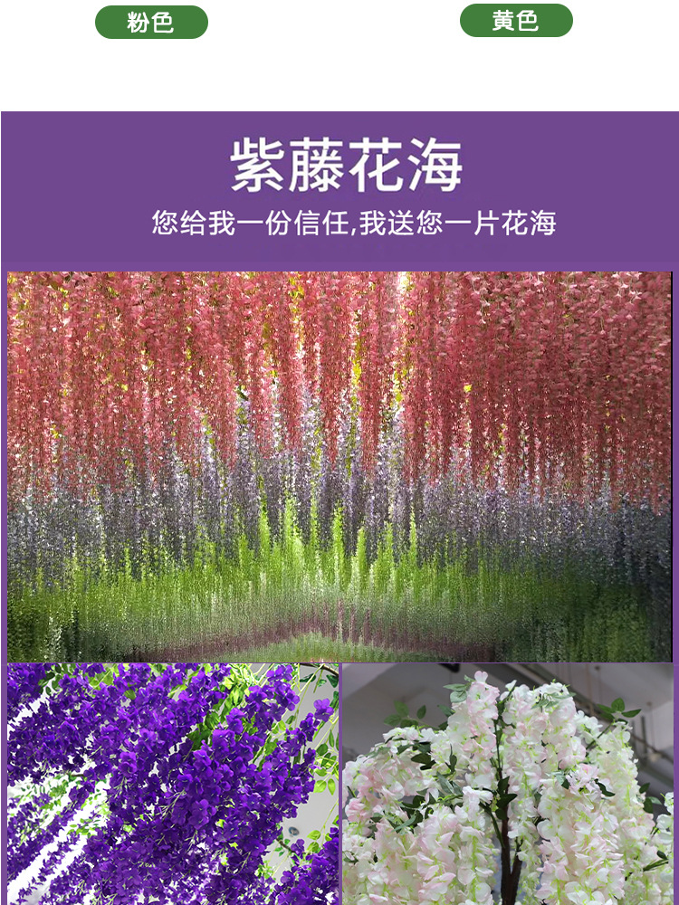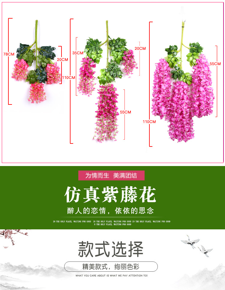 artificial flower artificial plant Artificial Wisteria Fake Flower Violet Ceiling HANAFUJI Encryption Indoor Wedding Celebration Decoration Rattan Plastic Vine Plant