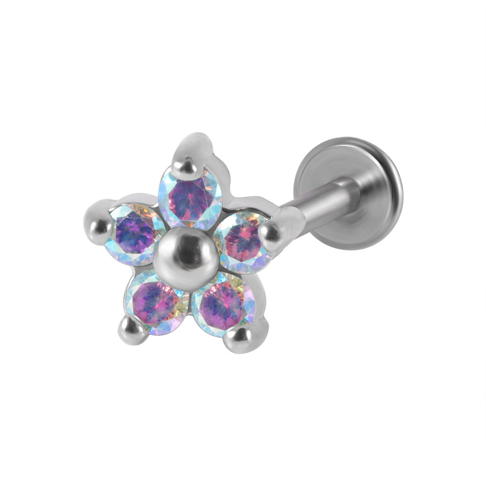 .Name: Five Ao Bao zircon lip piercing, flower-shaped zircon ear studs with clasp, Opal spiral inner teeth lip piercing, stainless steel ear bone piercing