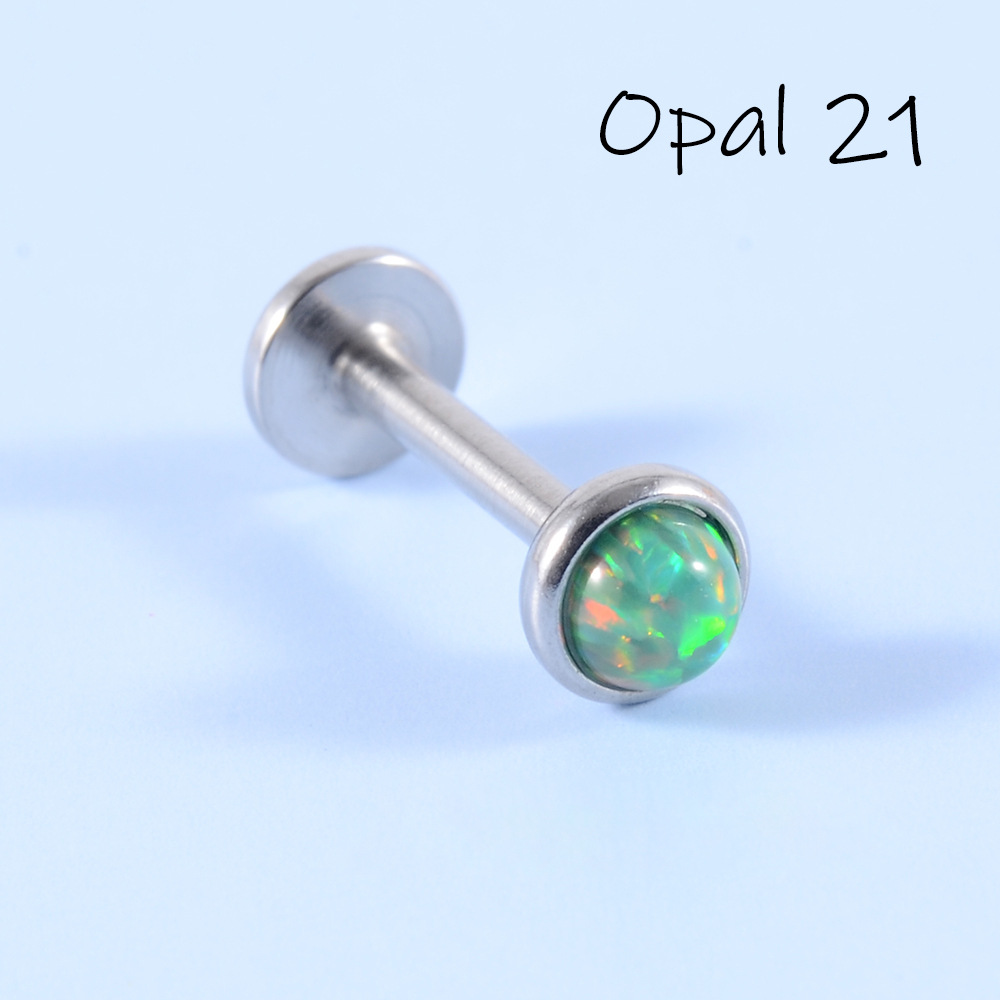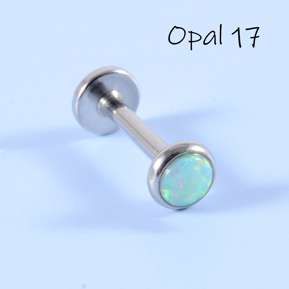 .Name: SpeedpaK Cross-border Stainless Steel Australian Opal Lips T-shaped Inner Teeth Straight Rod Earrings, Opal Inner Thread Soft Cartilage Earrings