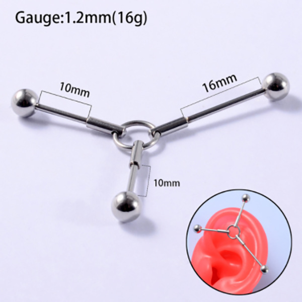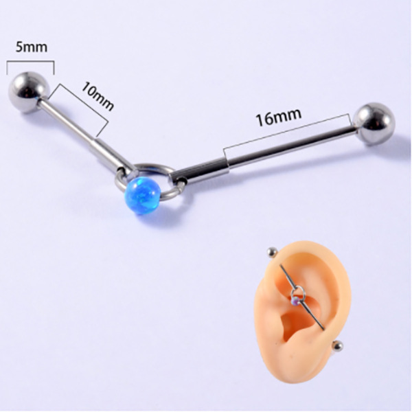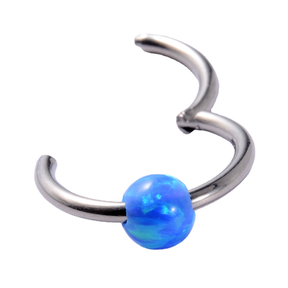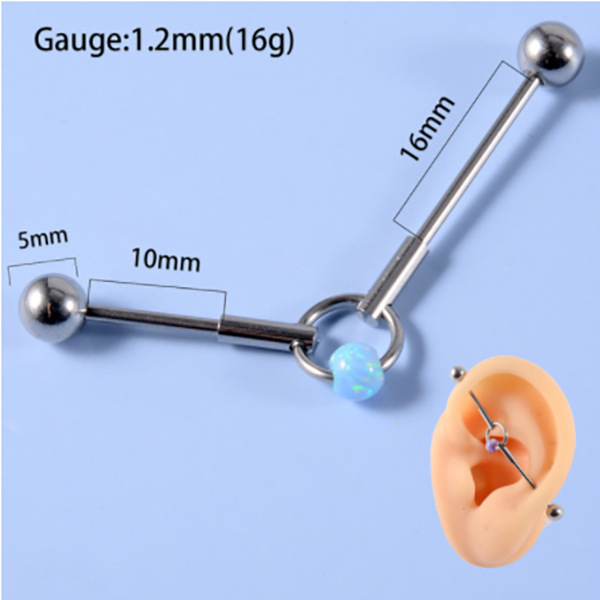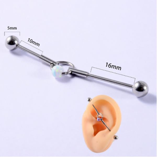 .Name: Cross-border New Industrial Dumbbell Earrings for Double Ear Holes Opal Stainless Steel Bridge Earrings G23 Titanium Australia Bone Ring Closure Ring