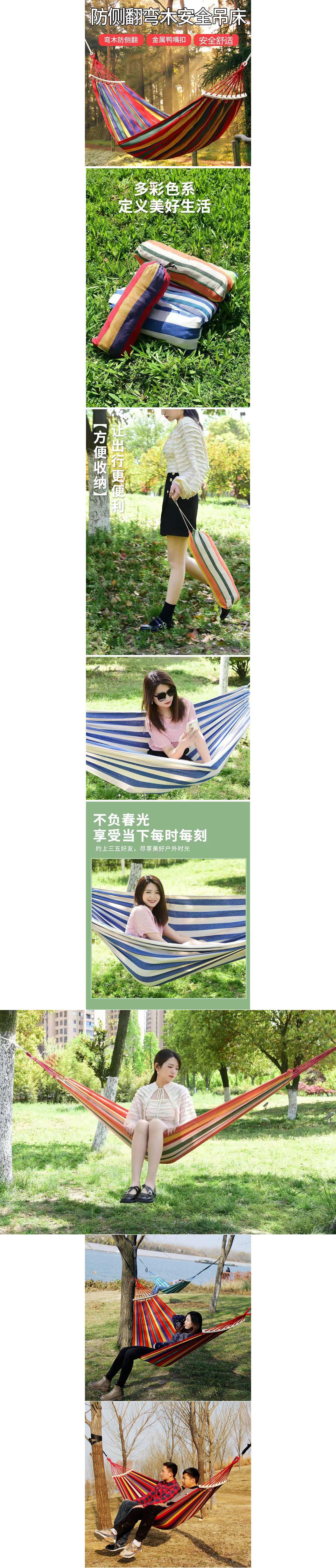 Outdoor Leisure Hammock Parachute Cloth Canvas Thickened Single Double Travel Travel Anti-Flip Cradle Swing 中文版