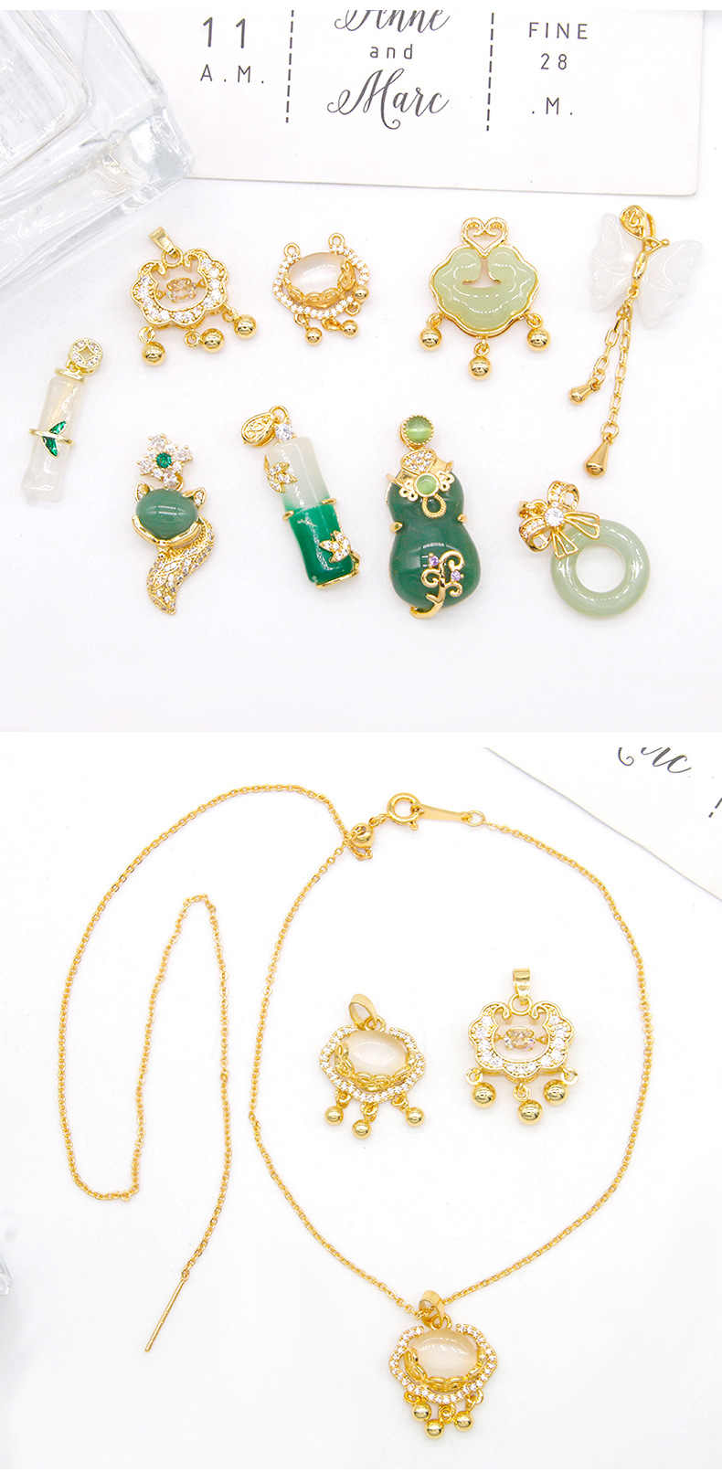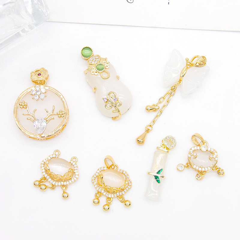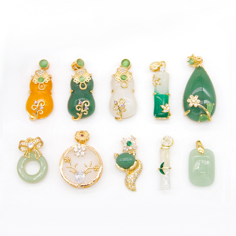 jade tassel pendant diy small drop bracelet necklace pendant jewelry accessories materials copper plated gold inlaid 中文版