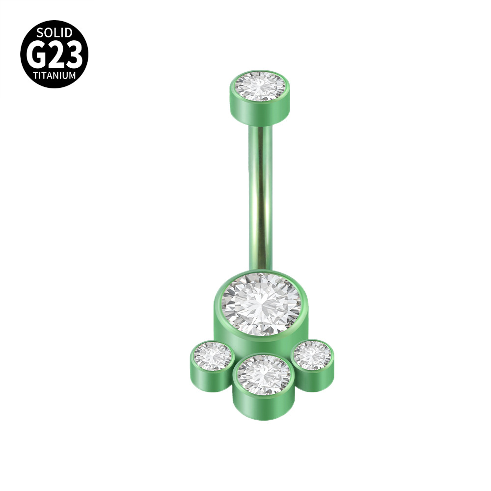 .Name: New G23 titanium inner tooth belly button stud bear paw bag diamond Australian gemstone belly ring electroplating multi-color inner thread personality 14g belly button