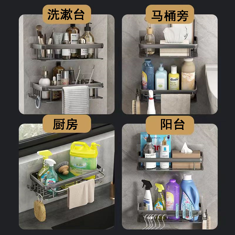 Bathroom Storage Rack Punch-Free Space Aluminum Bathroom Bathroom Washstand Wall-Mounted Toilet Storage Rack Wall 中文版