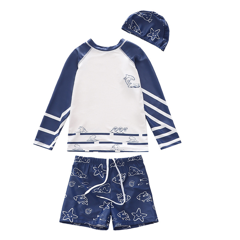 ins children's suit split long-sleeved swimsuit 2023 boys toddler children teens plus size boxer swimsuit wholesale