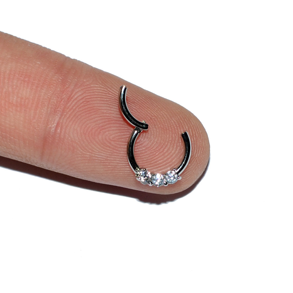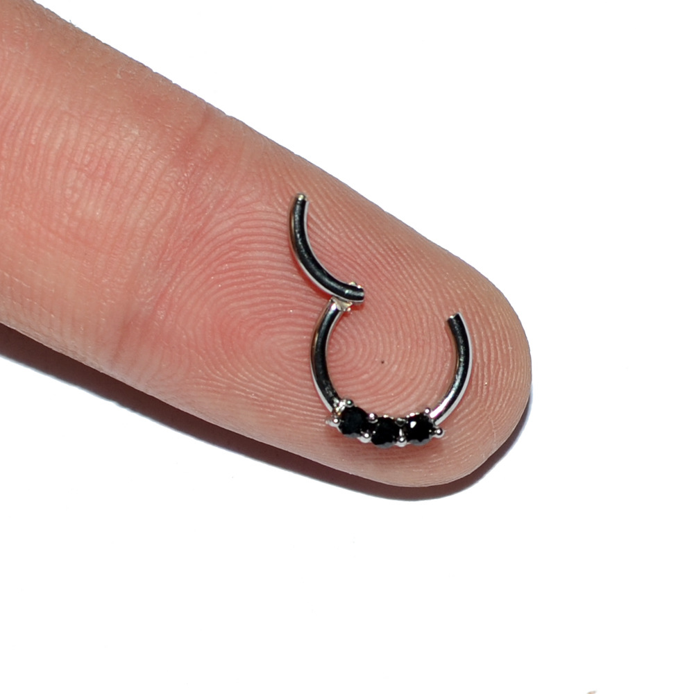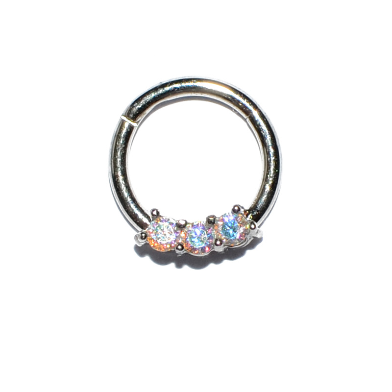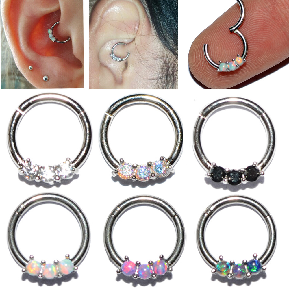 .Name: Cross-border stainless steel three Australian gem nose ring copper clamp zircon closure nose pin ring fire color opal nose ring ear bone ring