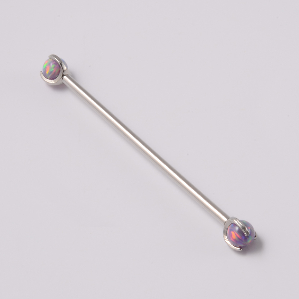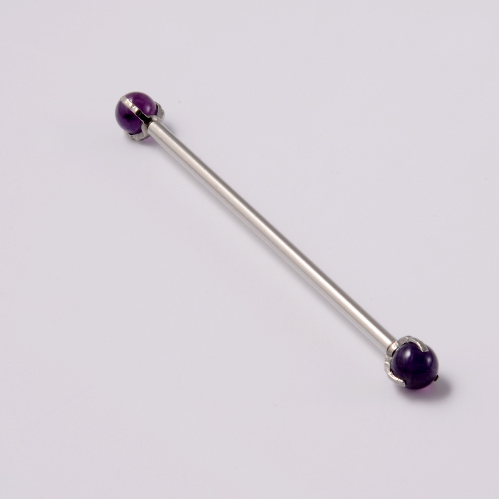 .Name: Cross-border Grab Ao Bao Industrial Dumbbell Earrings Stainless Steel Internal Thread Earrings Amethyst Protoplasma Round Bead Ear Bone Ring