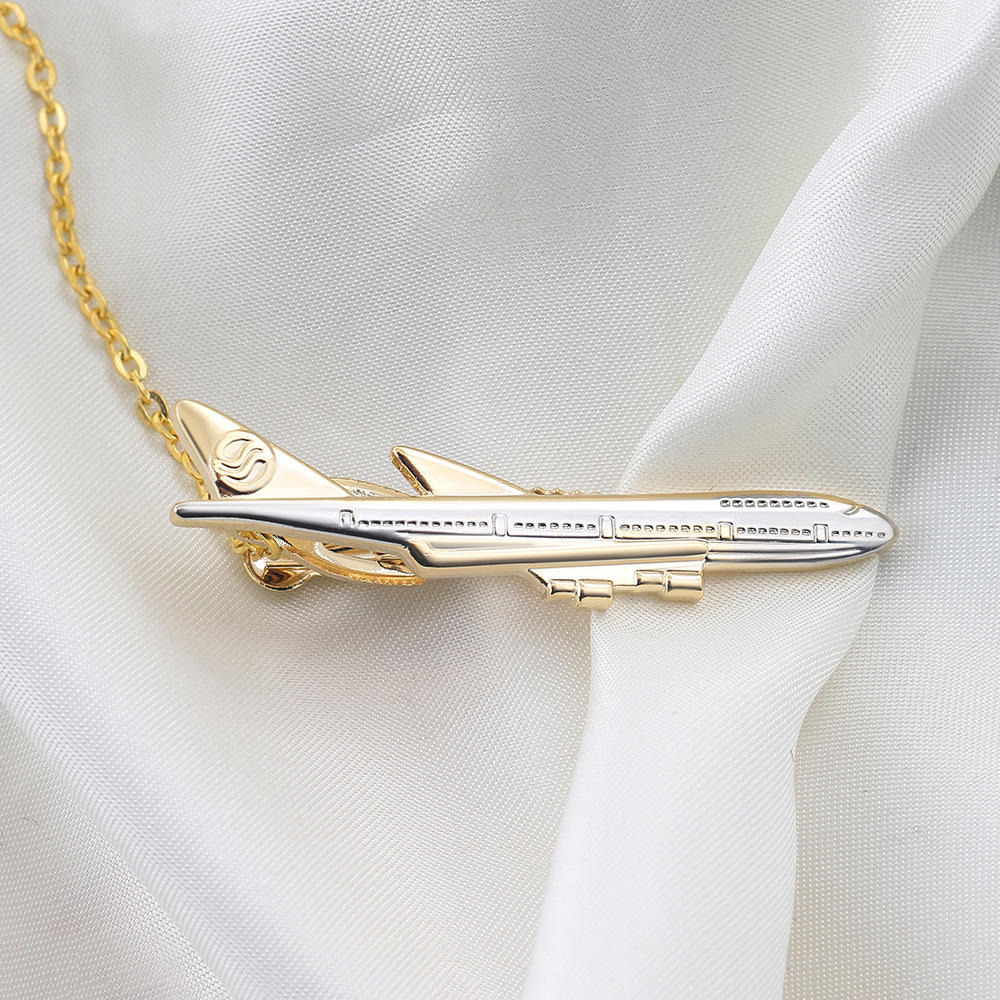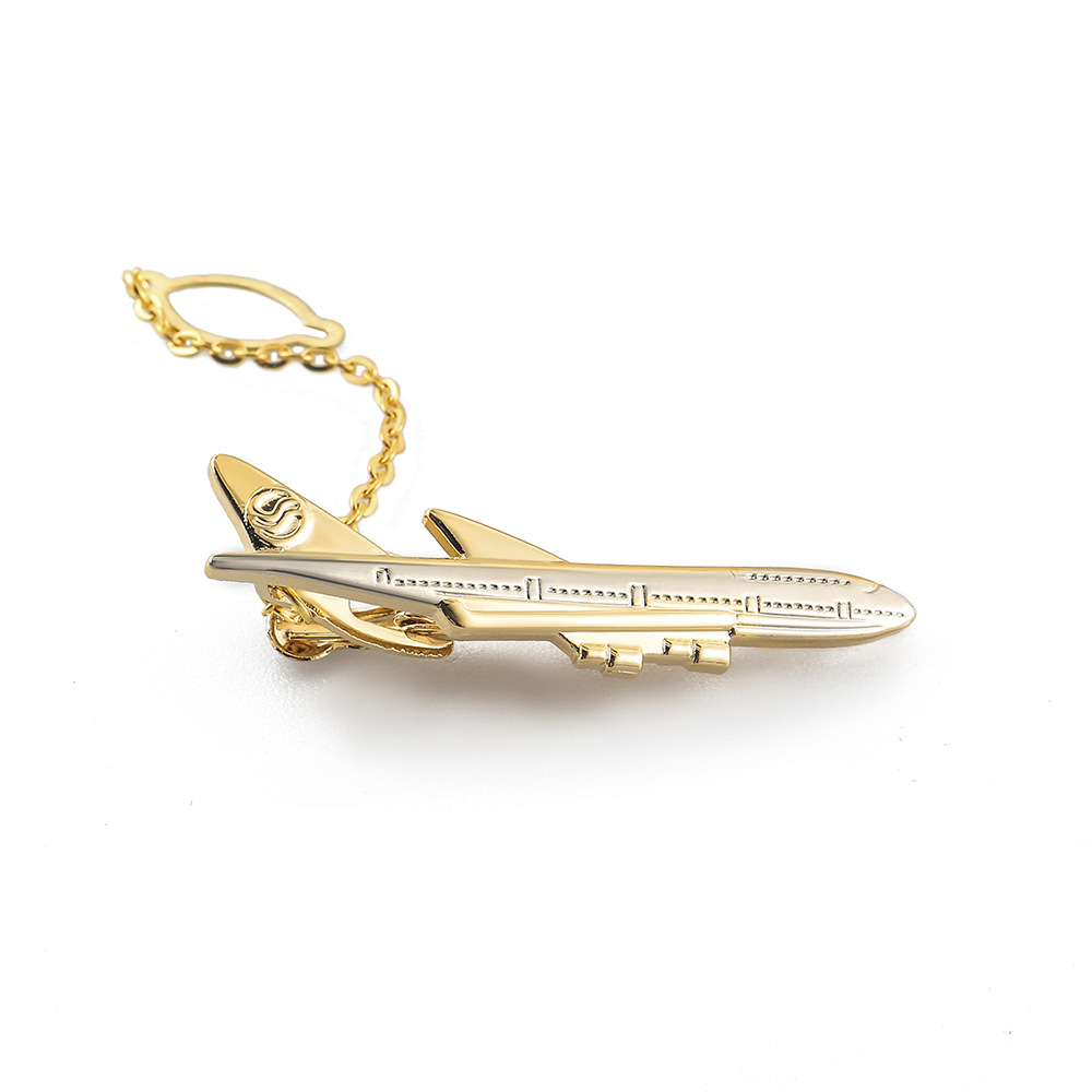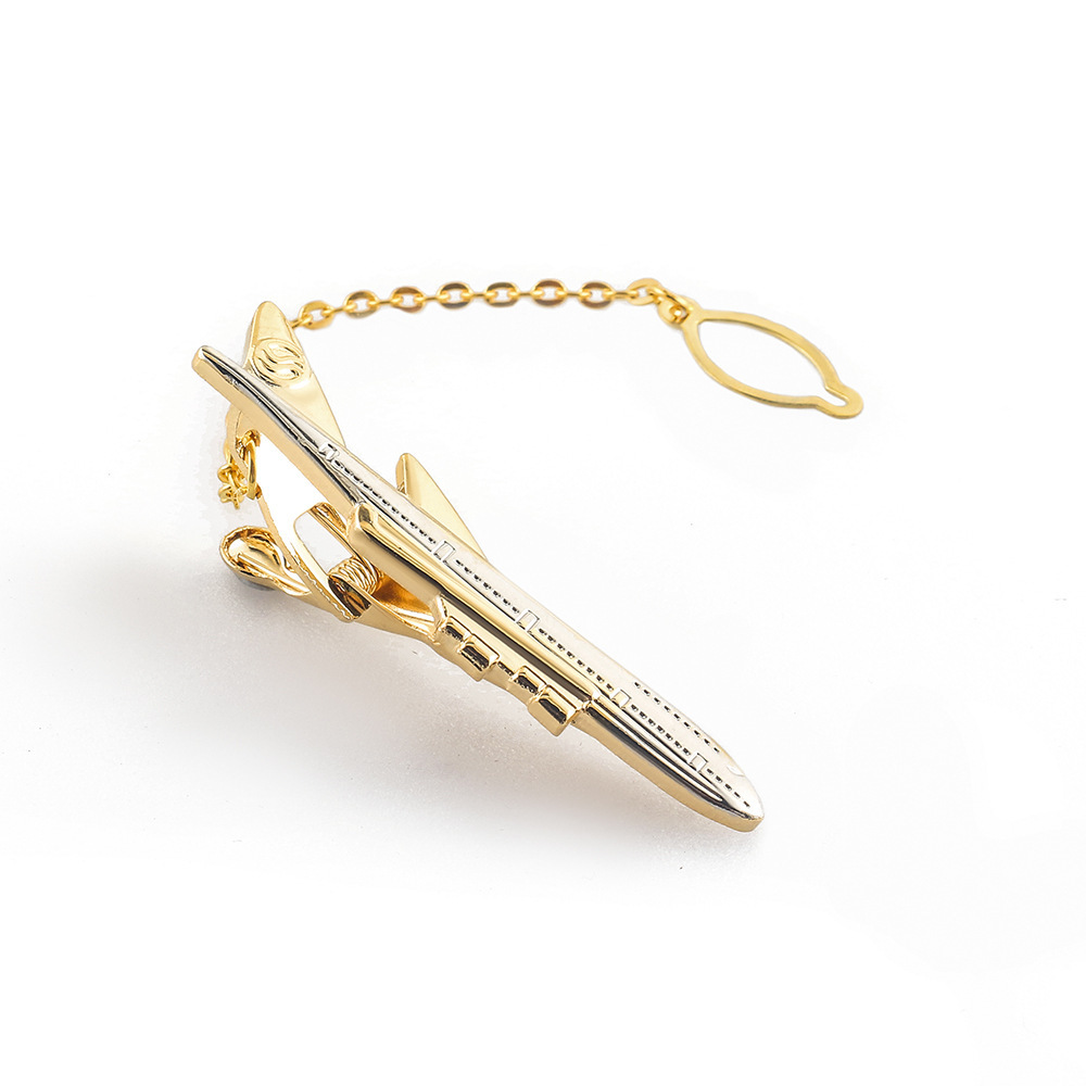 new products in stock gold and silver two-color aircraft tie clip metal plating men's business high-end tie clip wholesale 中文版