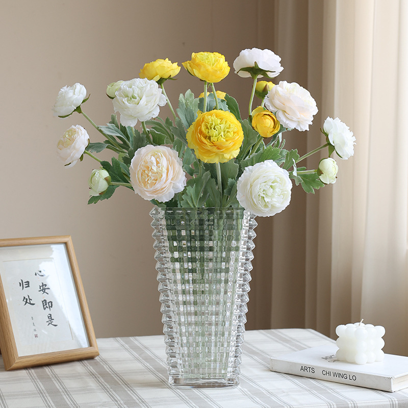 artificial flower artificial plant Domestic Ornaments Artificial Flower Live Simulation Wholesale High-End Ranunculus Asiaticus Artificial Flower Flocking 3 Heads Qianzi Lu Lian 中文版