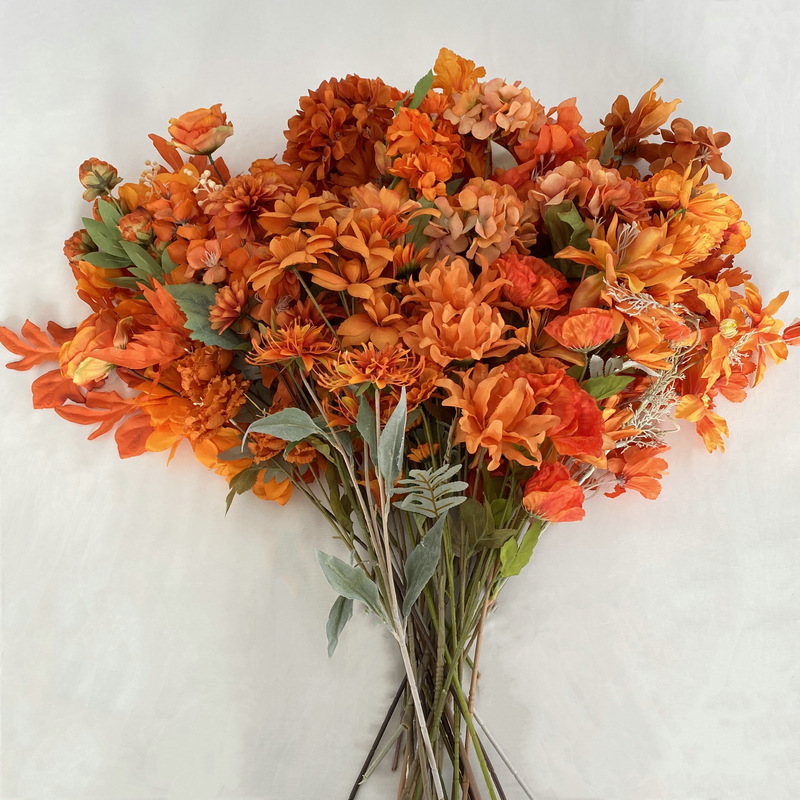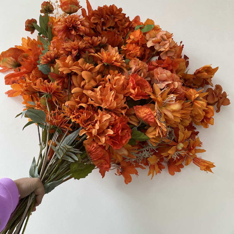 Caramel Background Silk Flower Floral Wedding Hall Decoration Ceiling Road Lead Fake Flower Peony Hydrangea Wedding Simulation Bouquet 中文版