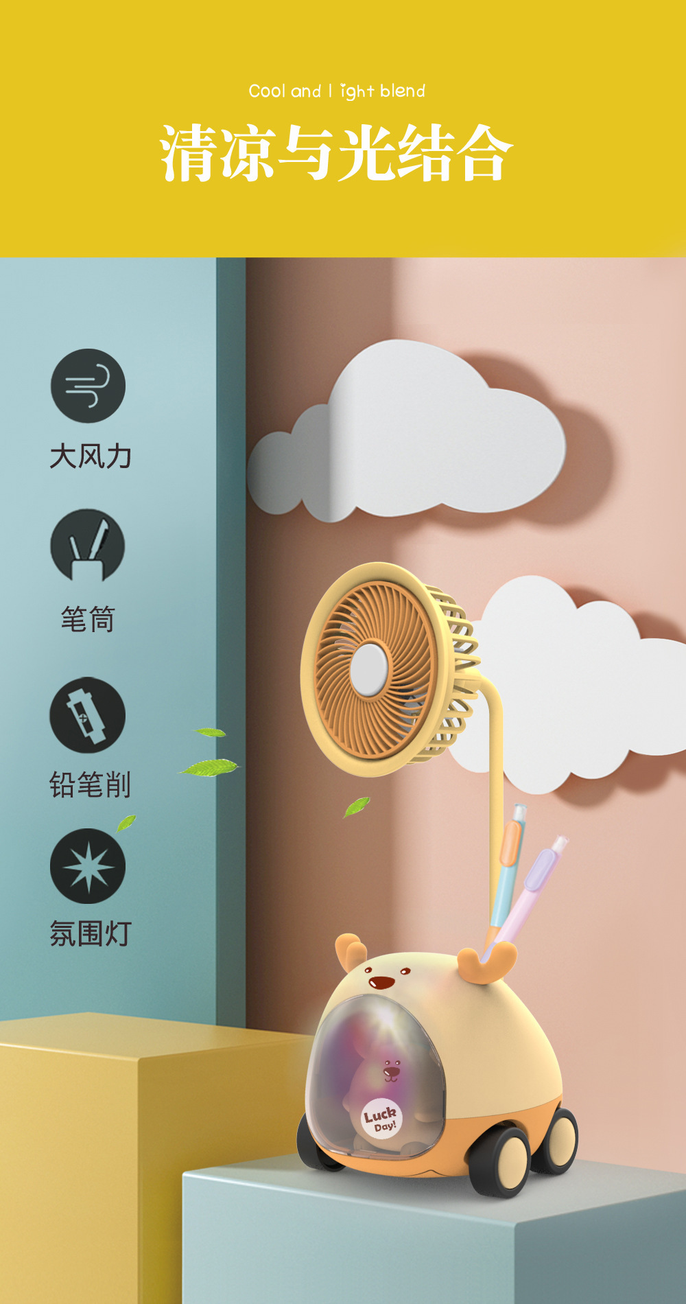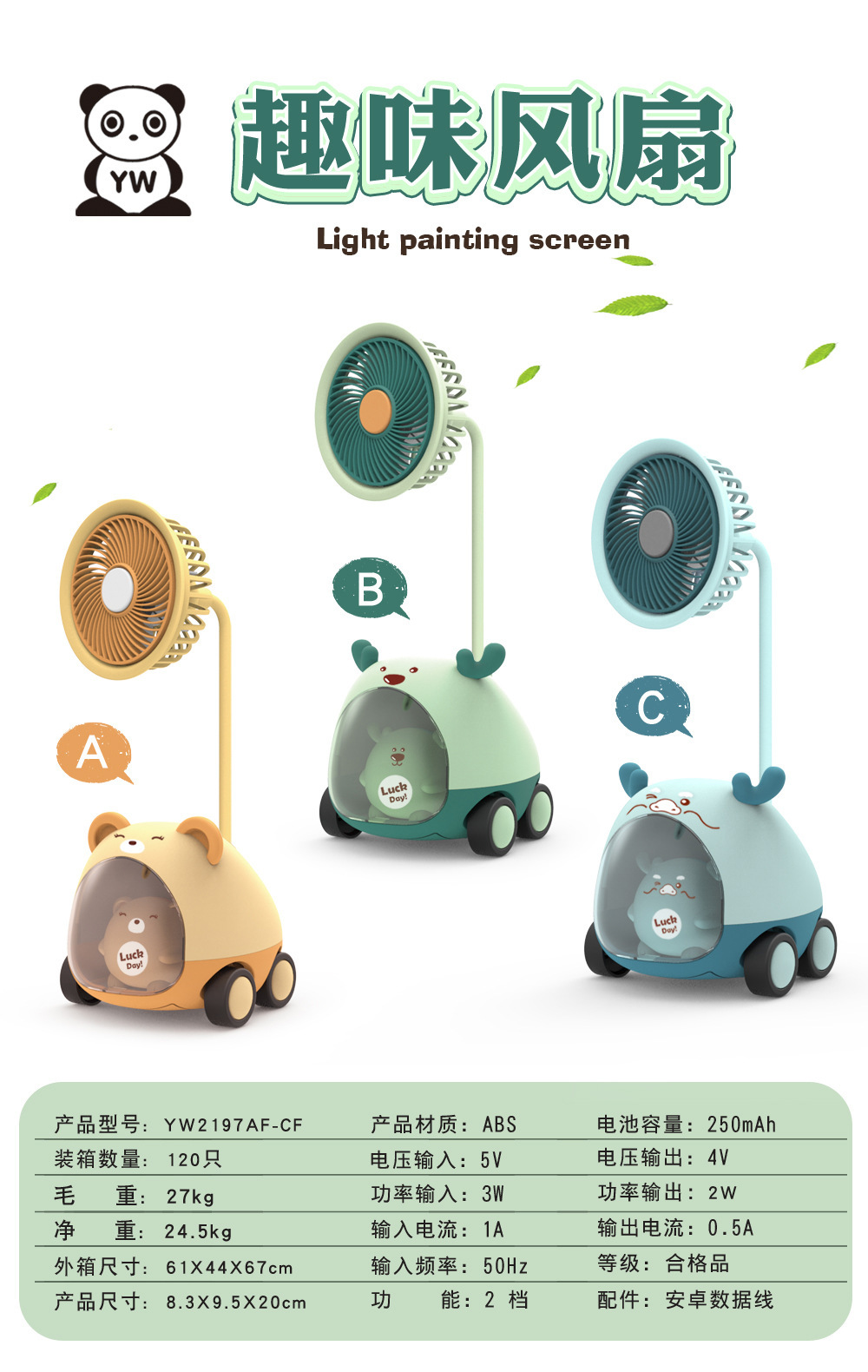 【Product Name】2-Speed Cute Car Fan