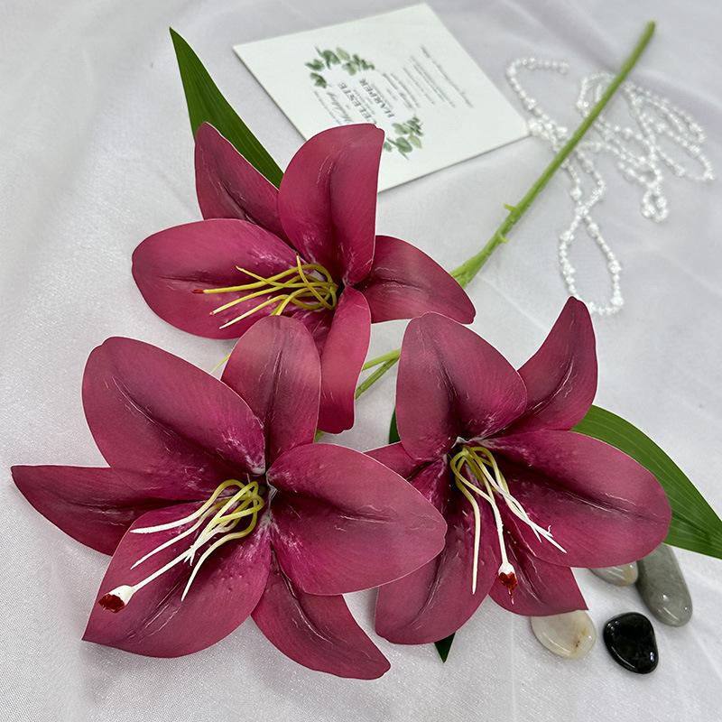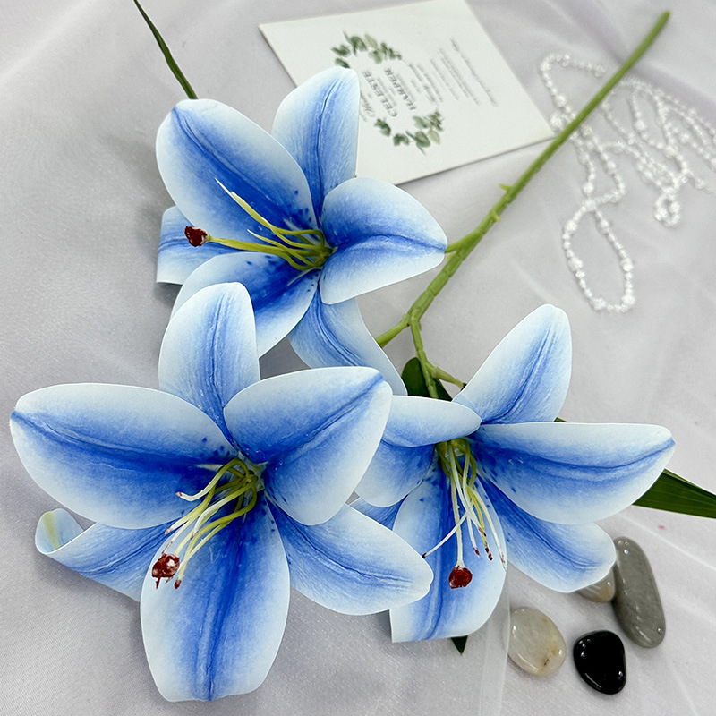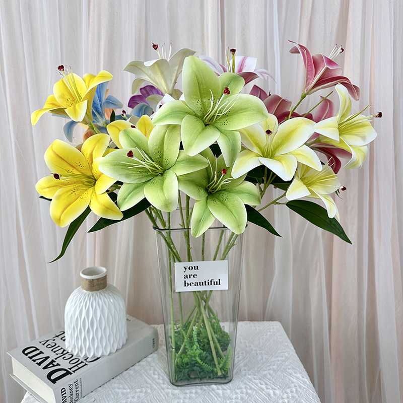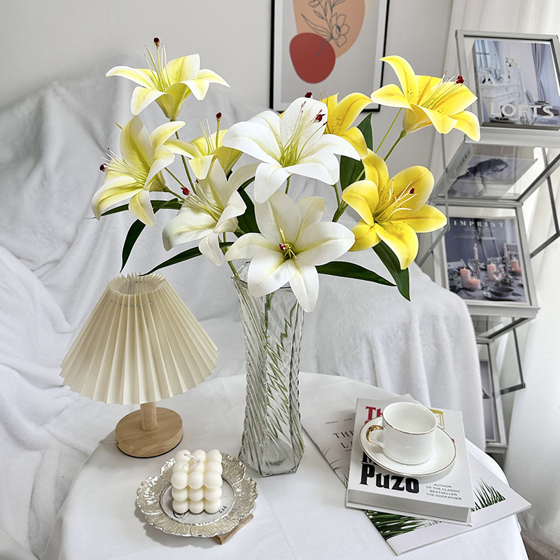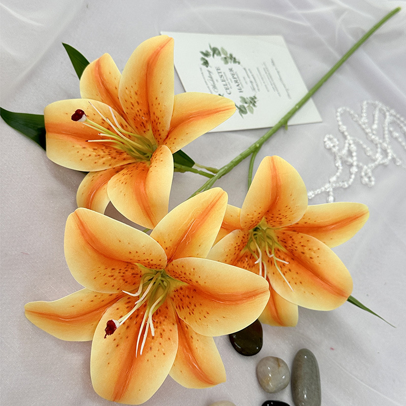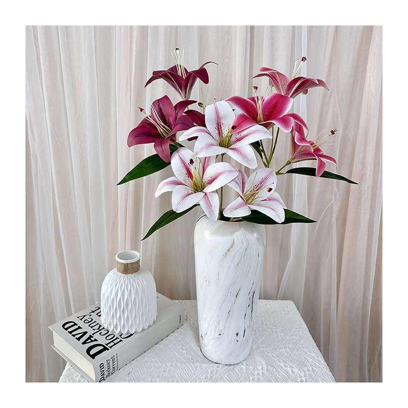 3d Artificial Flower Three-Head Lily Indoor Desktop Bedroom Showcase Decorative Fake Flower Spring Diy Home Flower Arrangement Ornaments 中文版