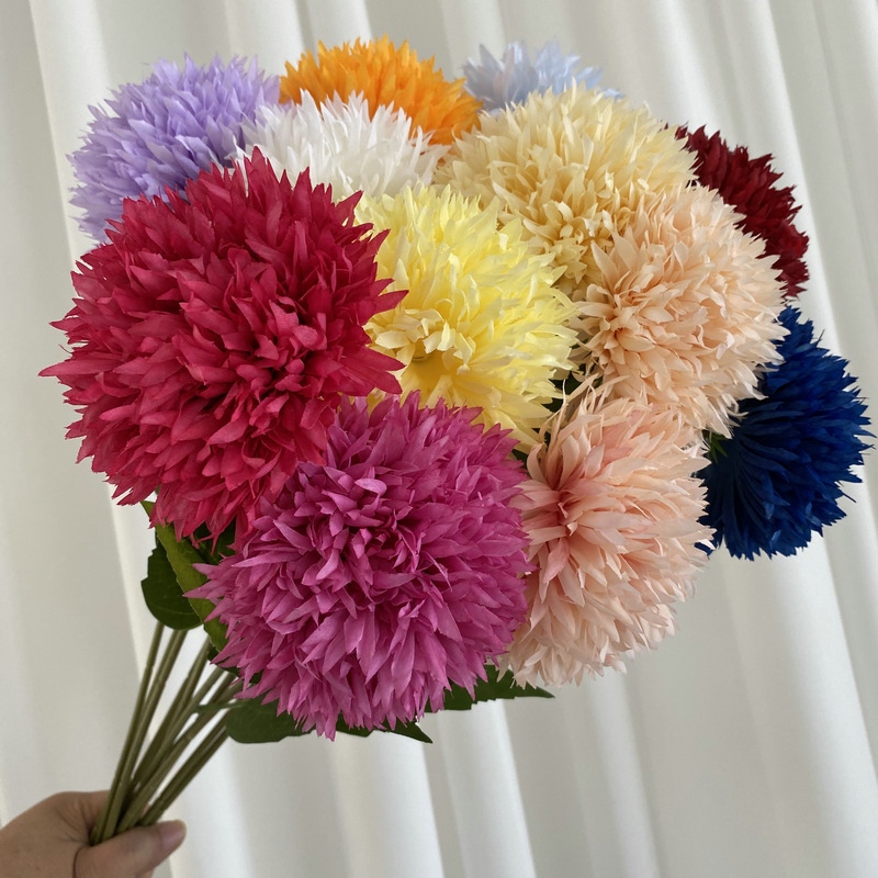 Single Golden Chrysanthemum Ball Home Soft Decoration Living Room Decorative Fake Flower Ball Chrysanthemum Venue Stage Wedding Road Lead Silk Flower