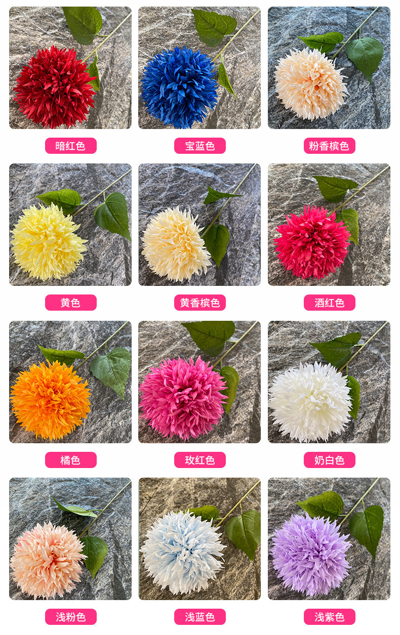 Single Golden Chrysanthemum Ball Home Soft Decoration Living Room Decorative Fake Flower Ball Chrysanthemum Venue Stage Wedding Road Lead Silk Flower 中文版