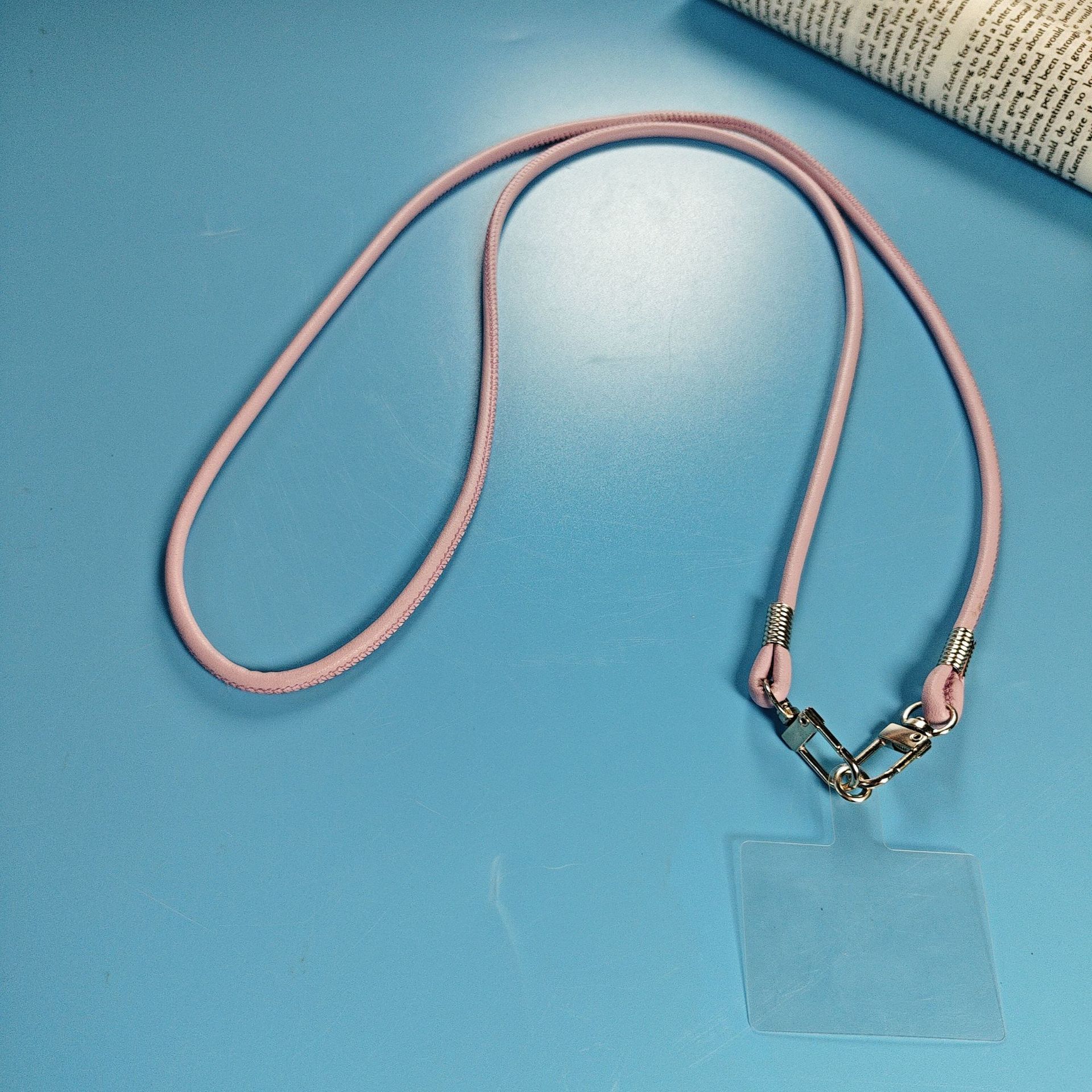 round leather pink rope + transparent clip