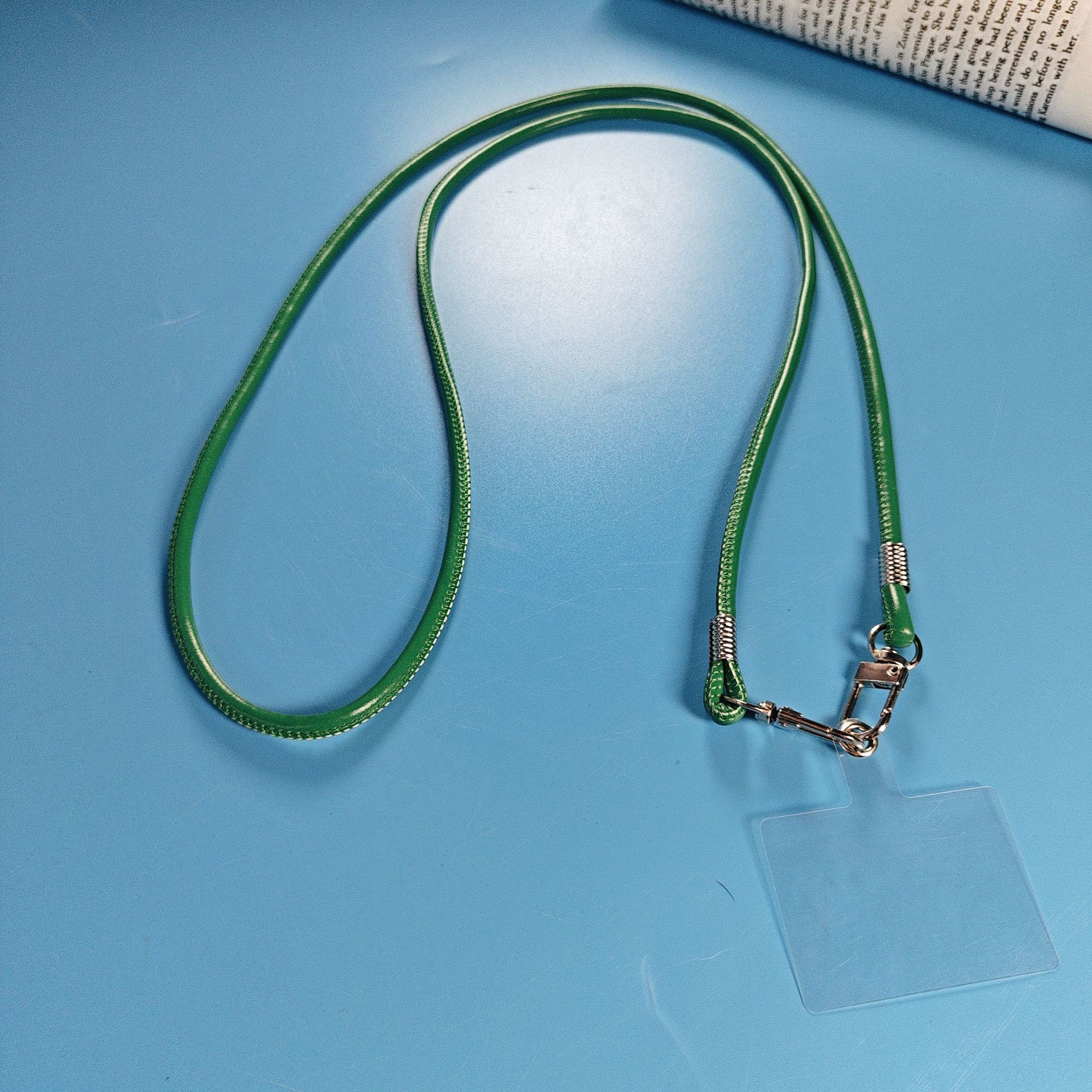 round leather green rope + transparent clip