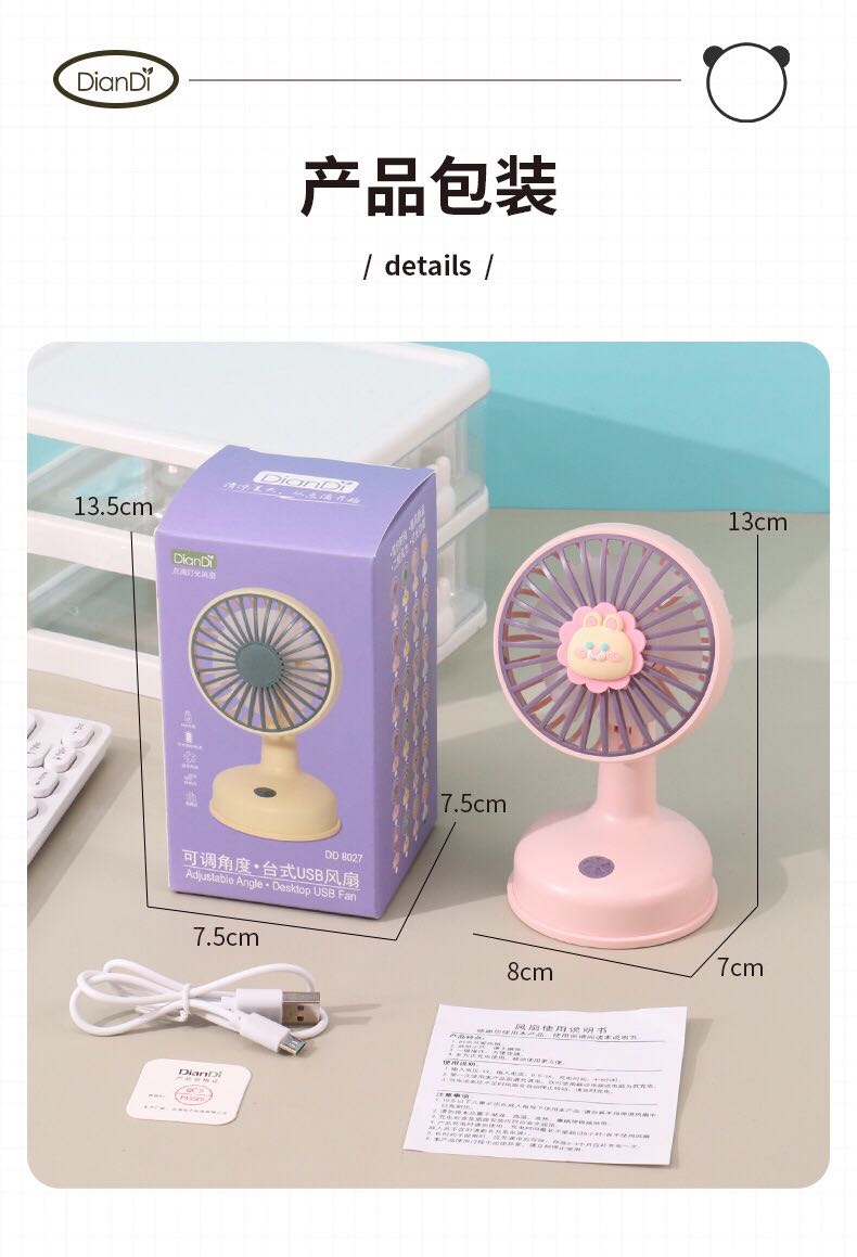 dd8027-5 cartoon fashion children's rechargeable fan student dormitory portable gift home wholesale cross-border toys 中文版
