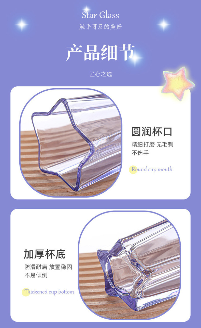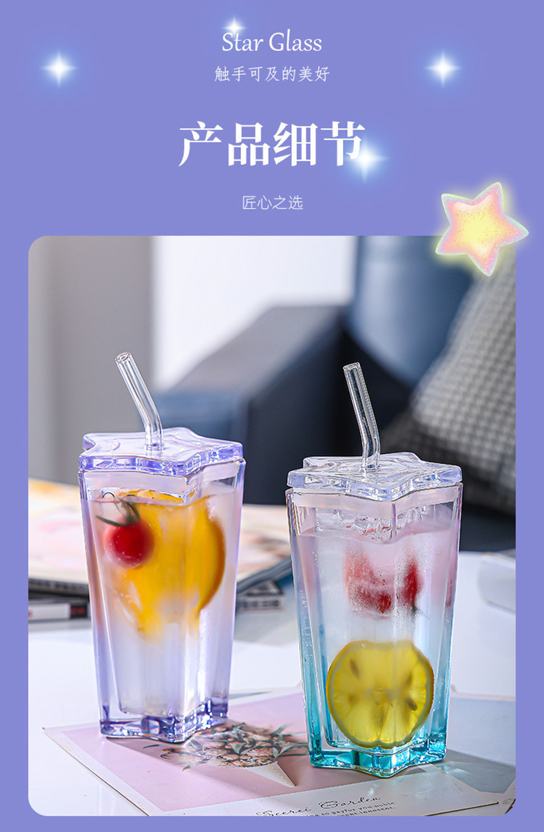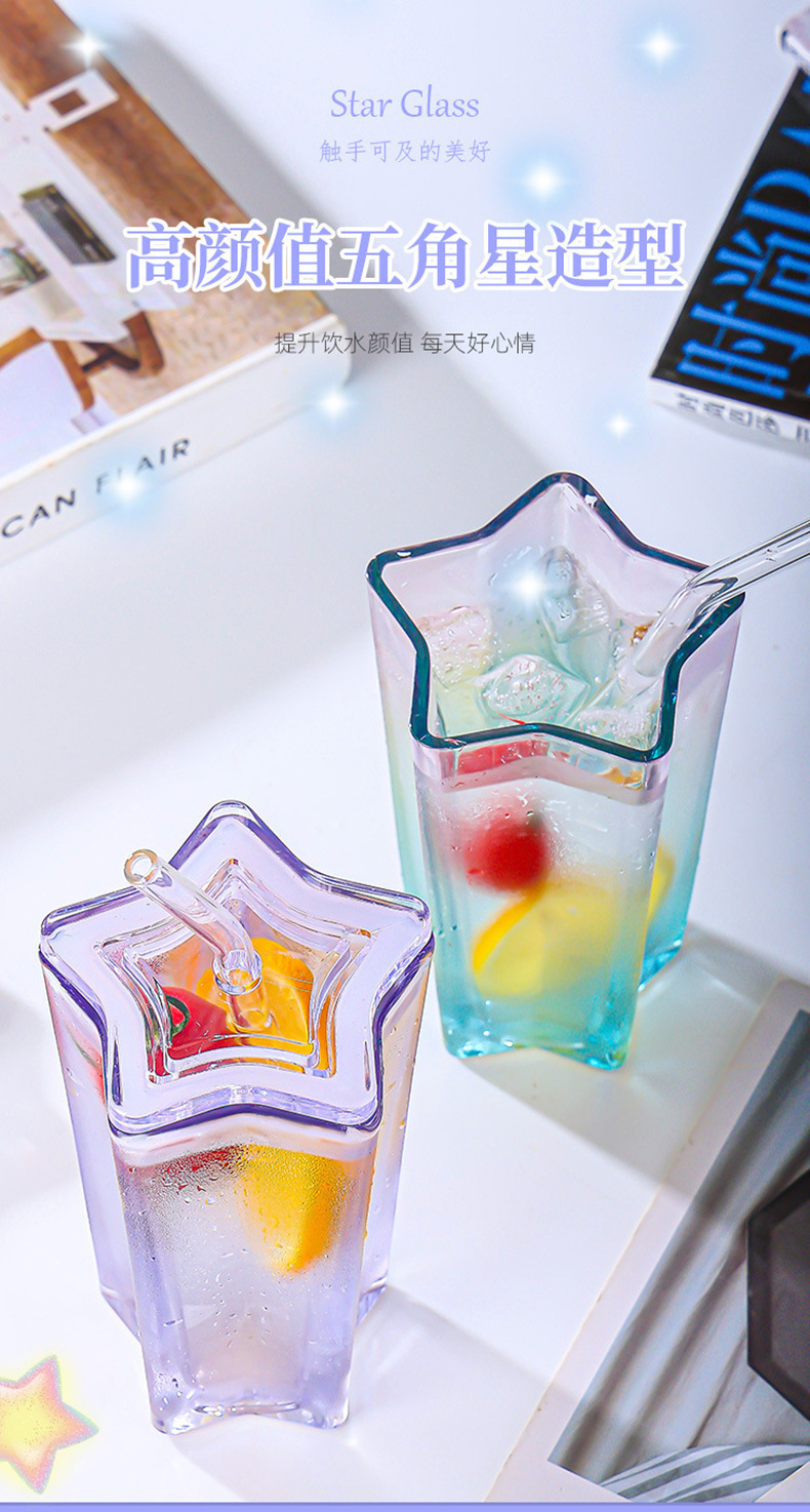 High-Looking Straw Cup Color Gradient Cup Cold Drink Cup Five-Pointed Star Glass Cup with Lid Coffee Cup Drinking Cup