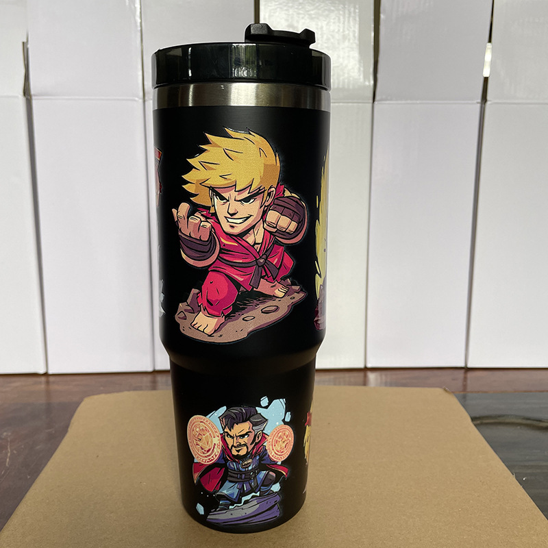 Cross-Border Cartoon 304 Stainless Steel Vacuum Cup with Straw Vacuum Ice Cream Cup Large Capacity 30Oz Car Cup