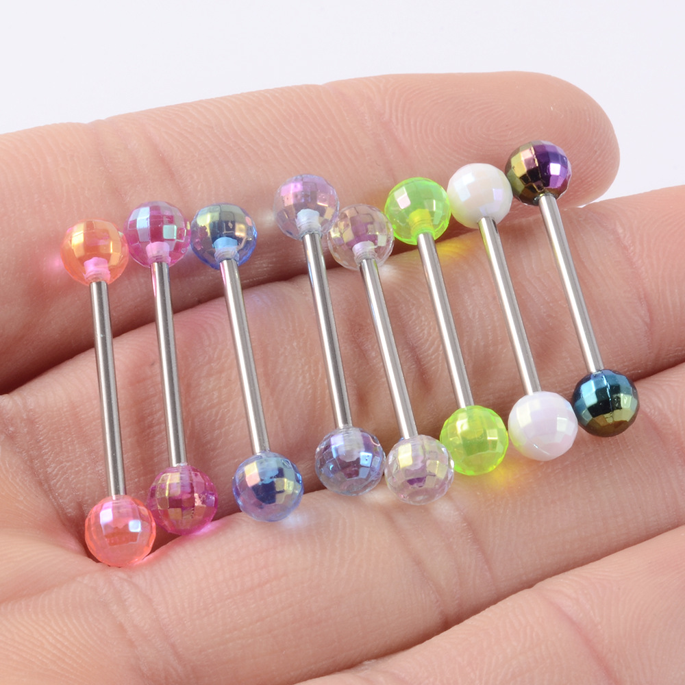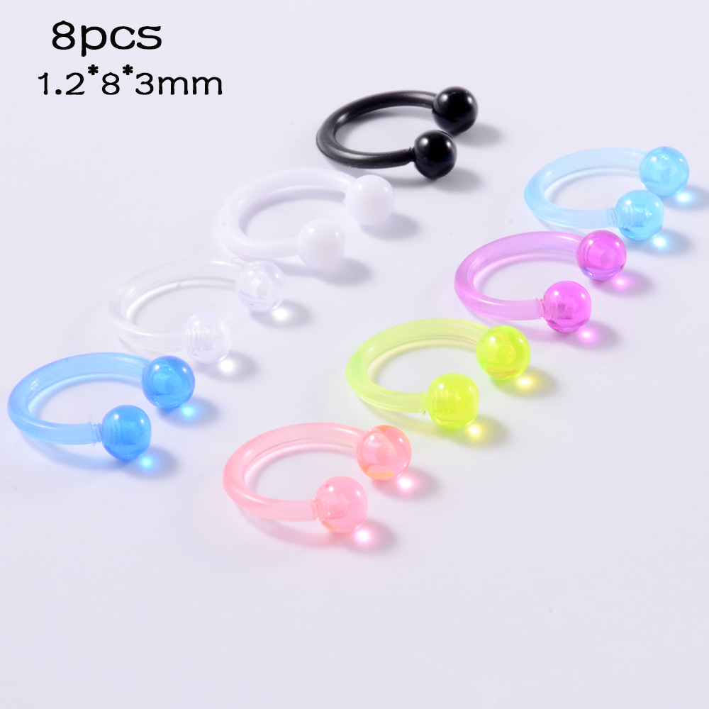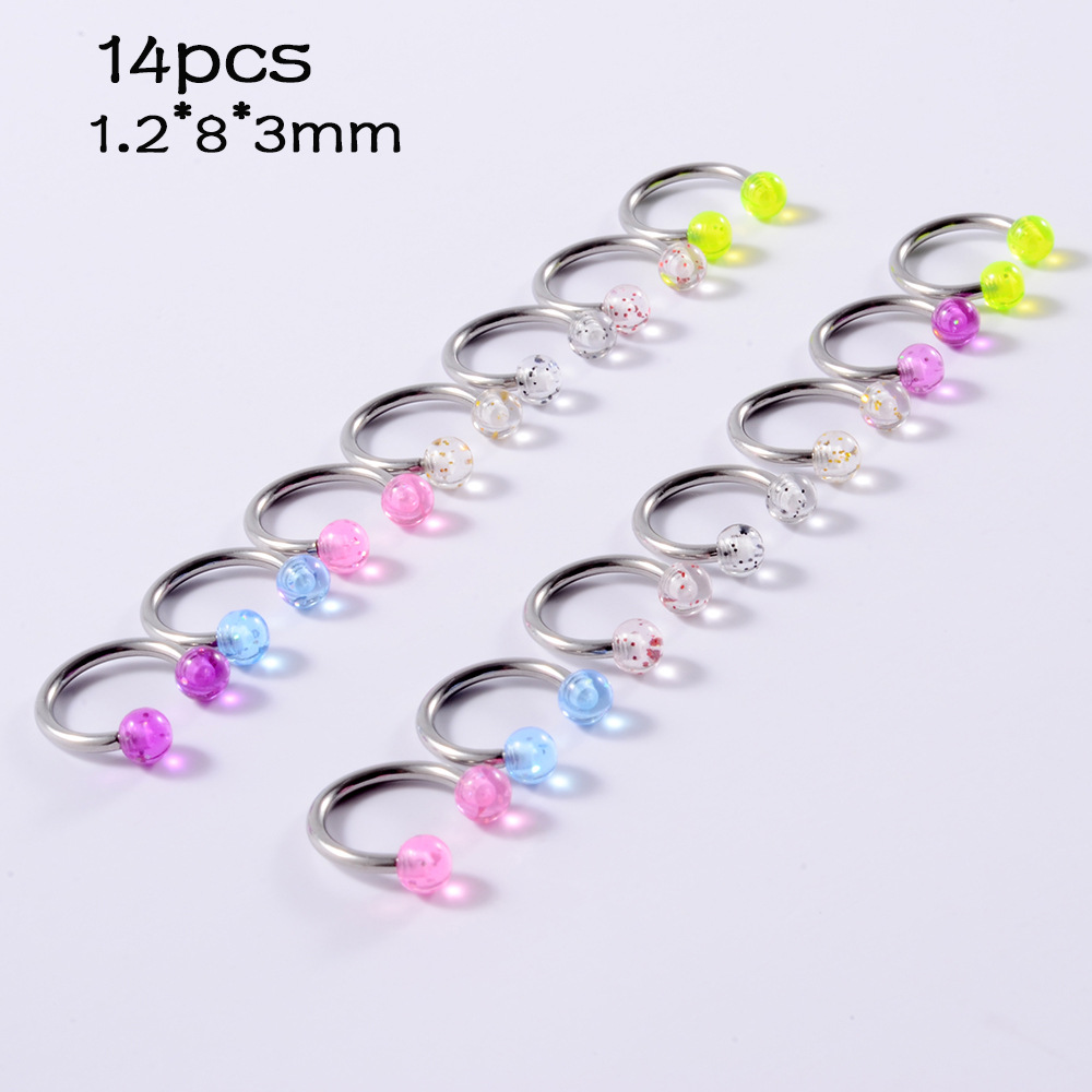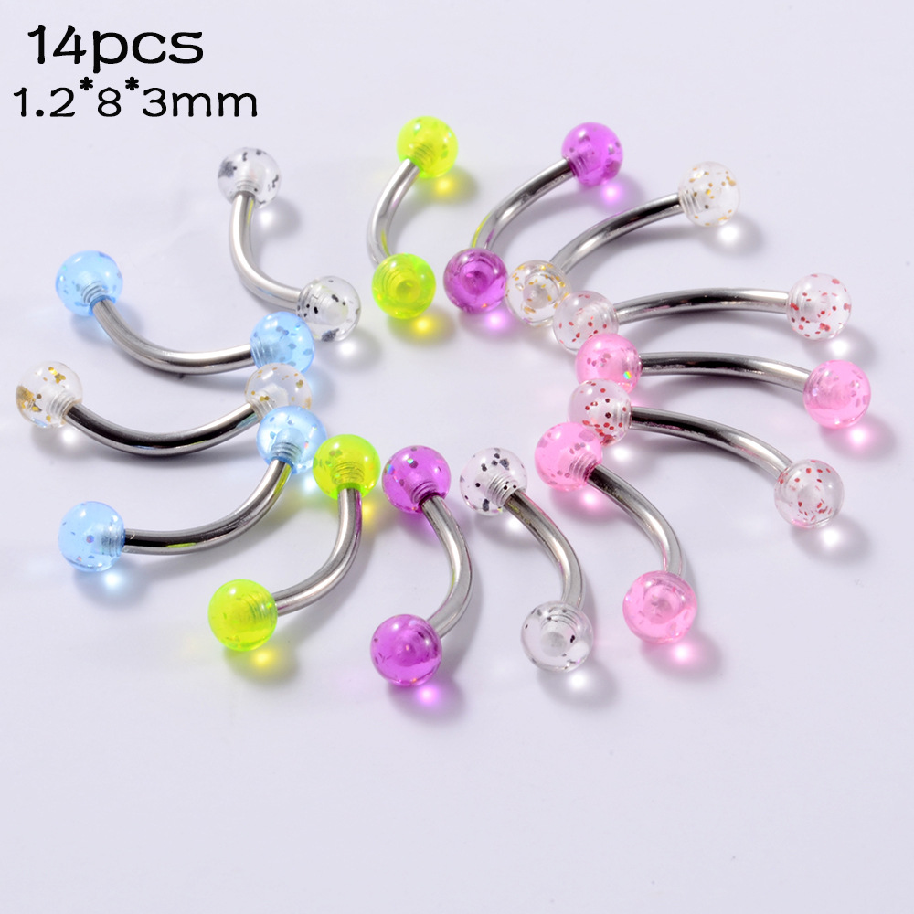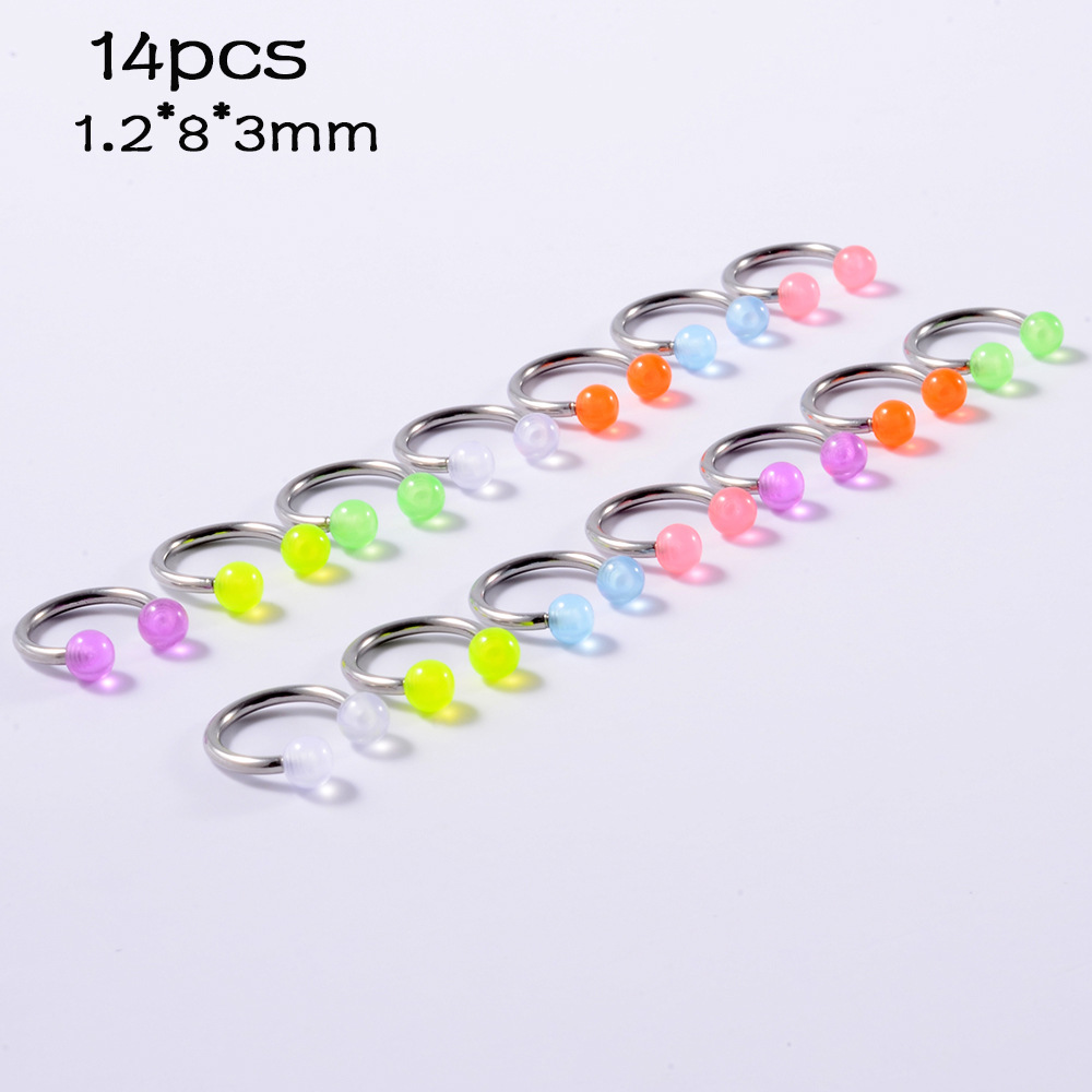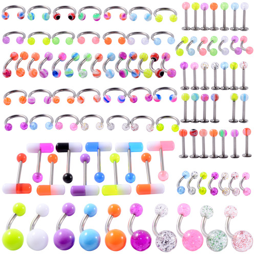 .Name: Cross-border acrylic piercing tongue stud set night light belly button crack ball belly ring horseshoe nose ring eyebrow stud lip stud