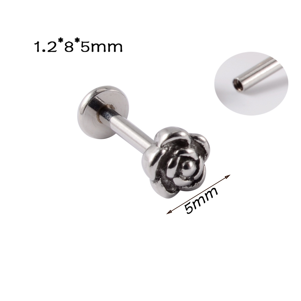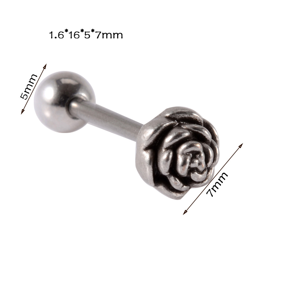 Name: Cross-border e-commerce rose milk nail tongue nail stainless steel bent rod nose nail card ball nose ring flower inner teeth lip nail