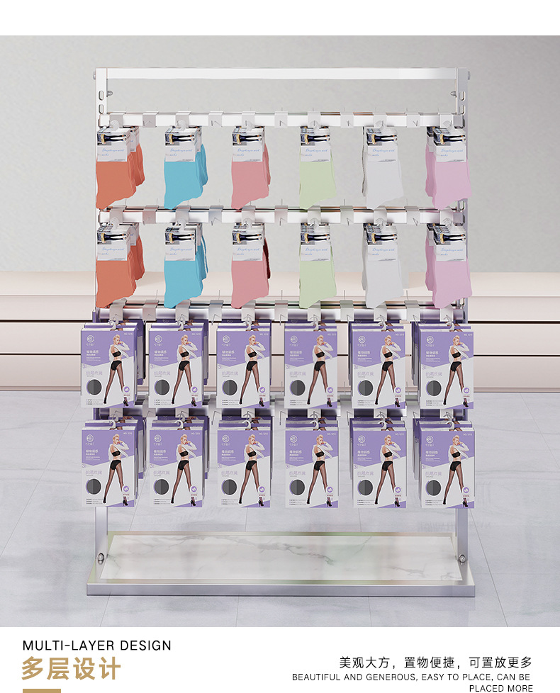 Internet celebrity liftable underwear and sock display rack, boxed iron art free-standing style, nano gold, silver, black, and white double-sided multi-layer stockings, pantyhose, thong island rack, dedicated shelf for department store underwear shop, wall-mounted single-sided, hanging men's and women's shorts display rack, phone case decor, storage rackCan be freely raised and lowered, moved left and right, sturdy and stable with no swaying.