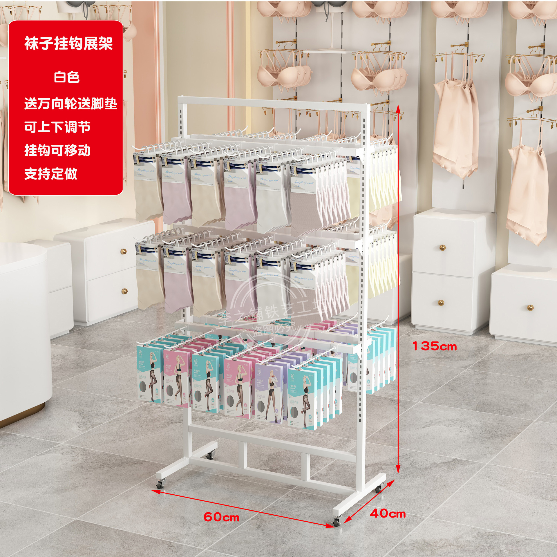 socks rack length 100 * width 40 * height 135 white with 48 socks hooks