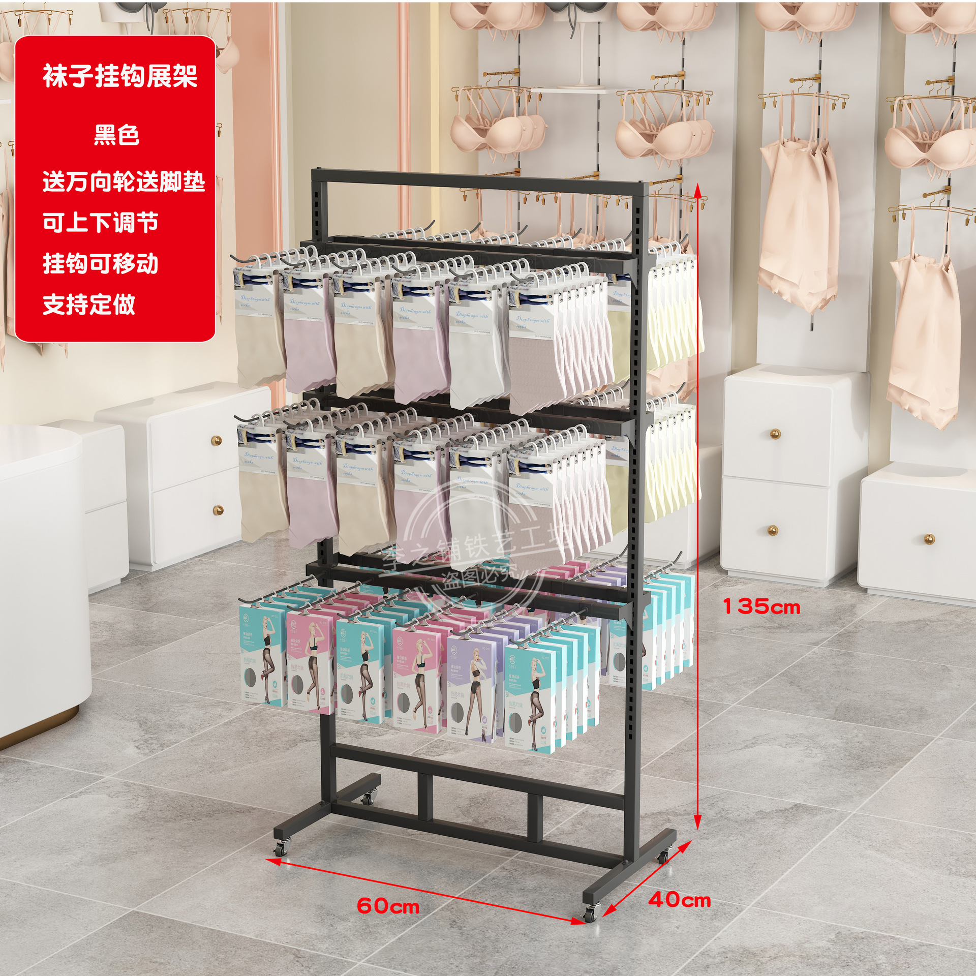 socks rack length 60 * width 40 * height 135 black with 30 socks hooks