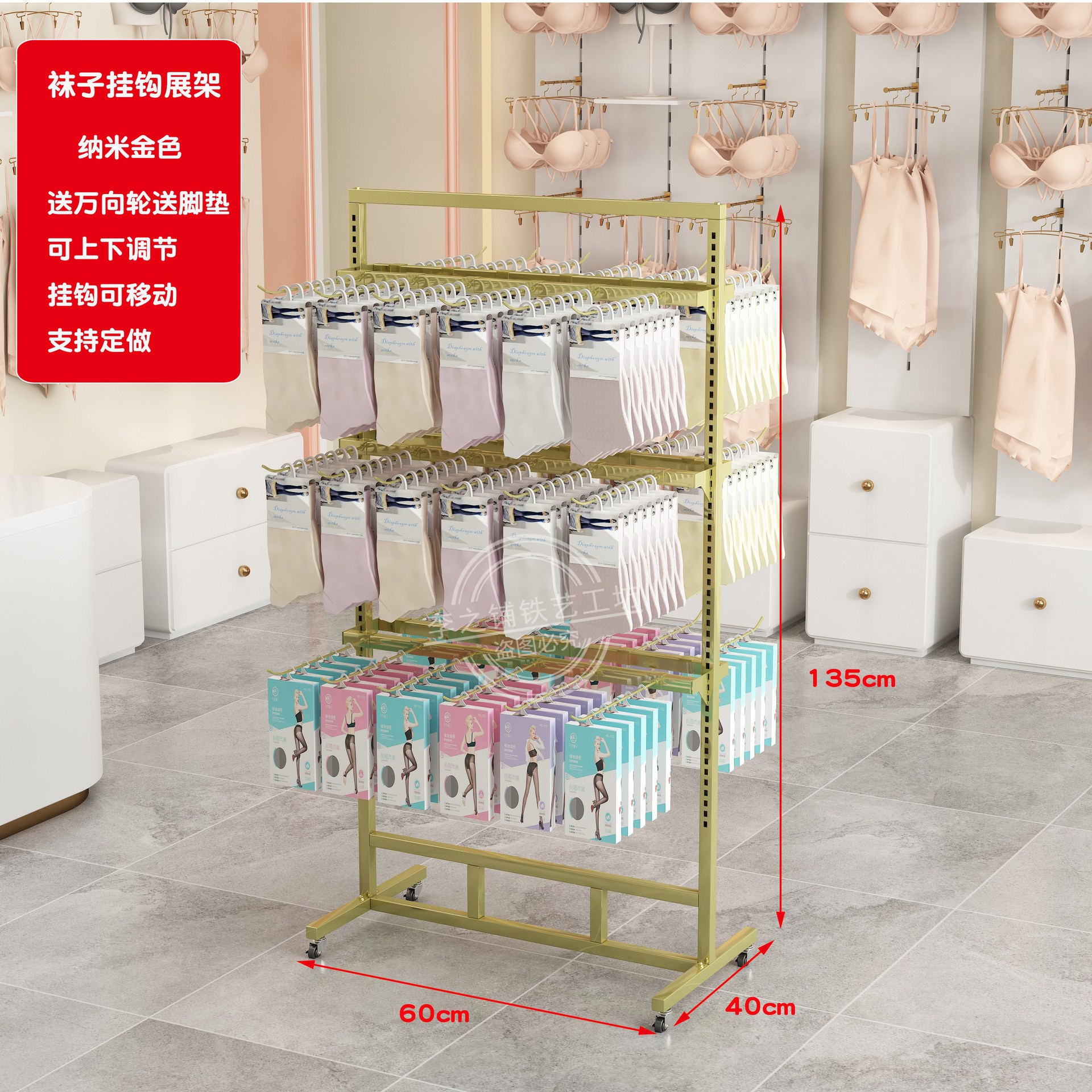 socks rack length 60 * width 40 * height 135 nano gold with 30 socks hooks
