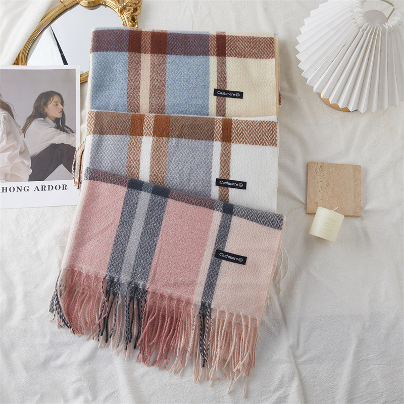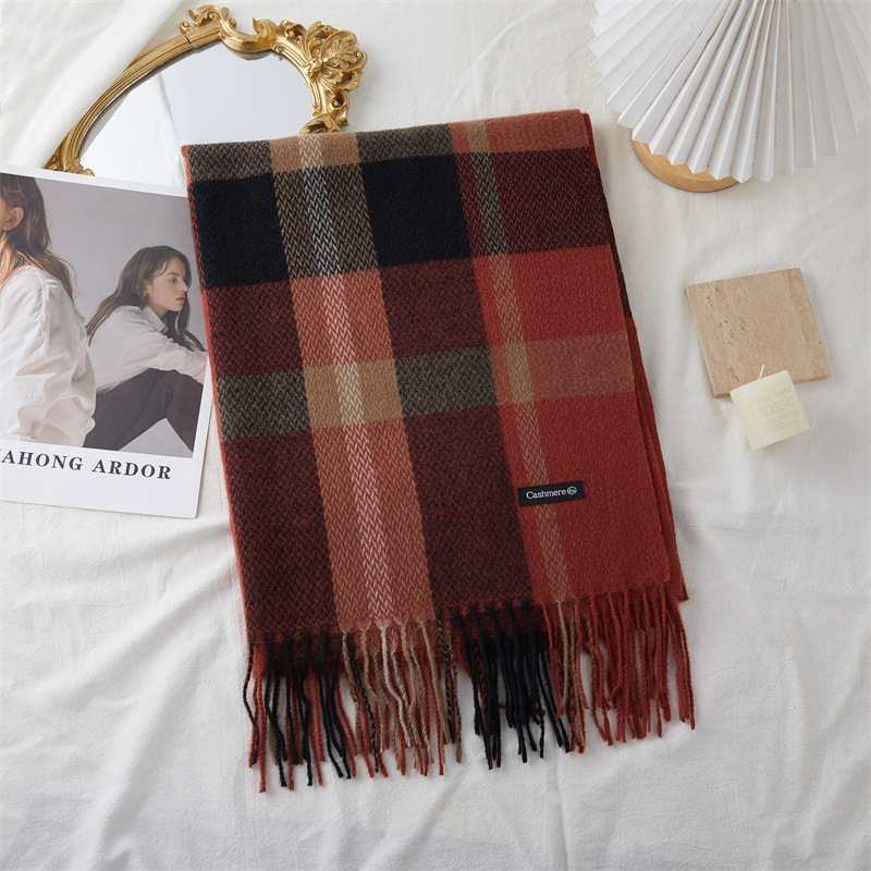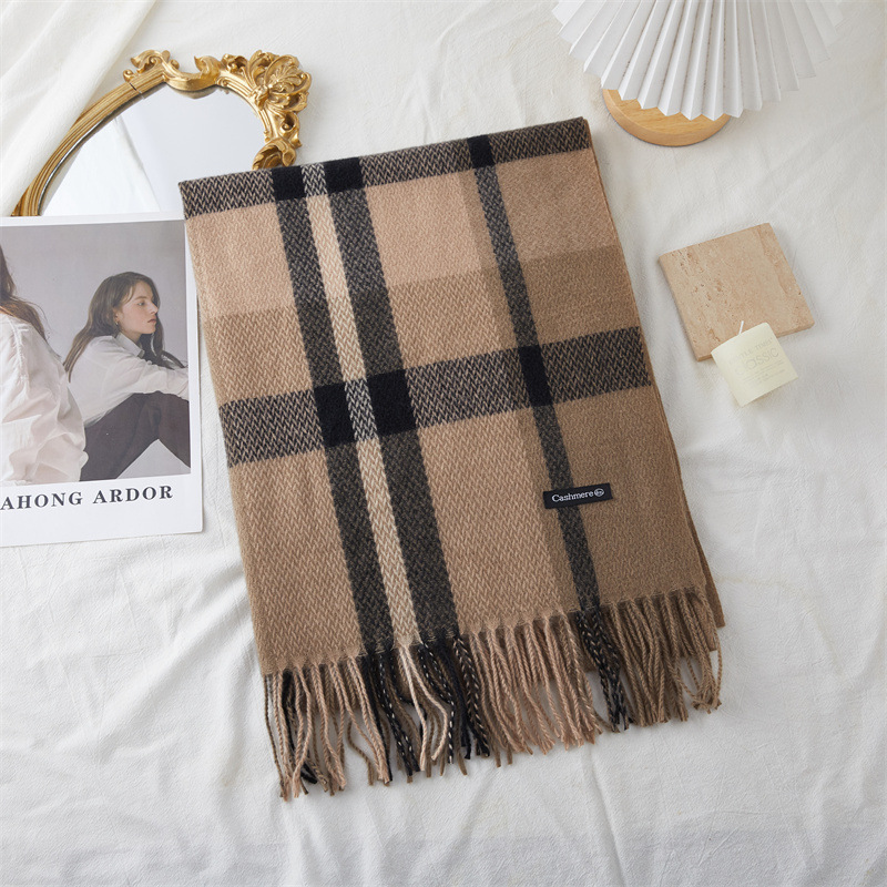 new cashmere double-sided plaid scarf women's korean-style thickened large shawl wholesale extended warm dual-use scarf