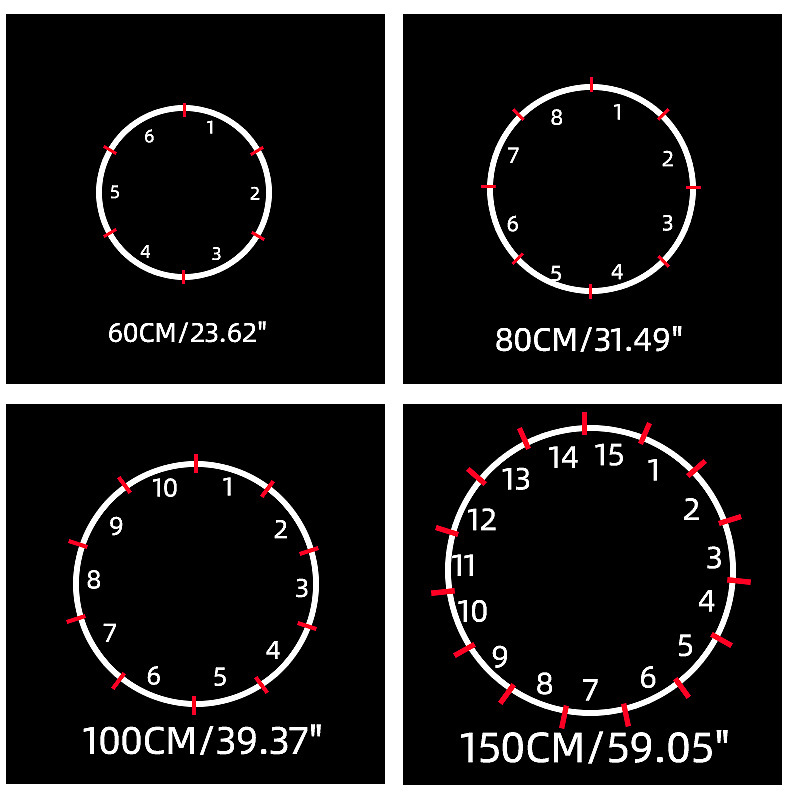 | diameter of a ring | 60cm | 80cm | 100cm | 150cm | 180cm | 200cm | 220cm | 240cm |