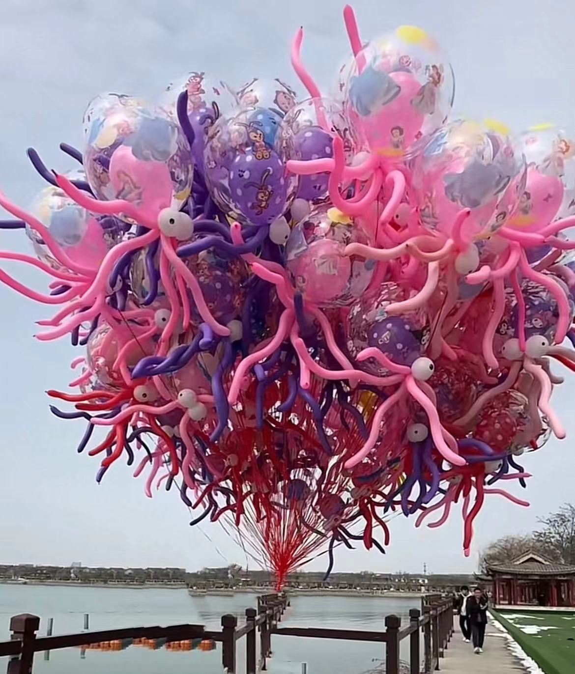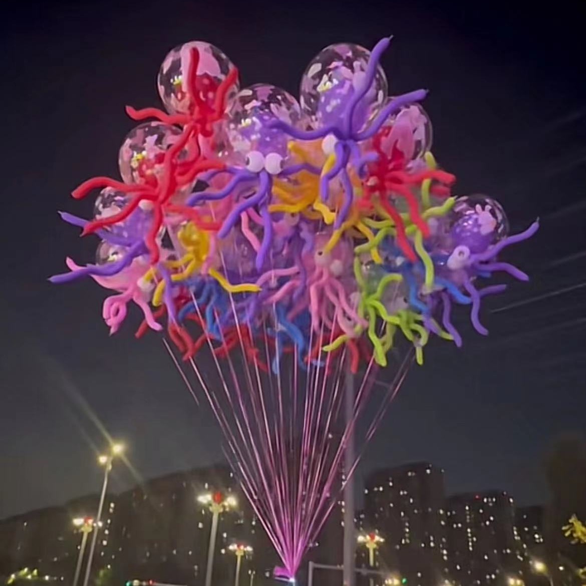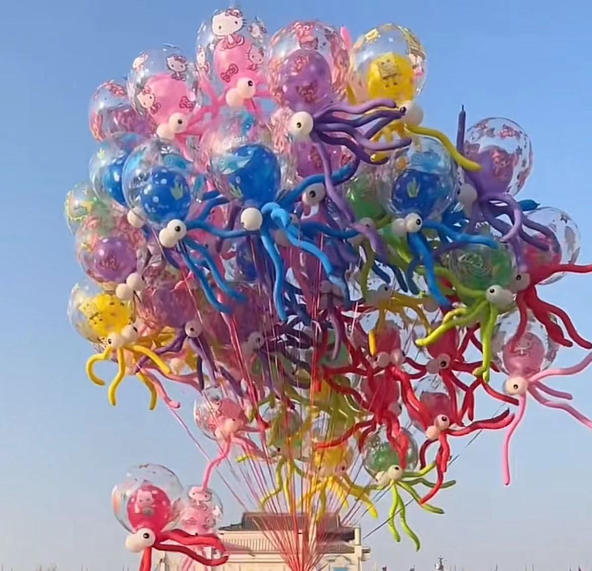 mixed color printing bounce ball octopus 1 set (handheld) get pole care free