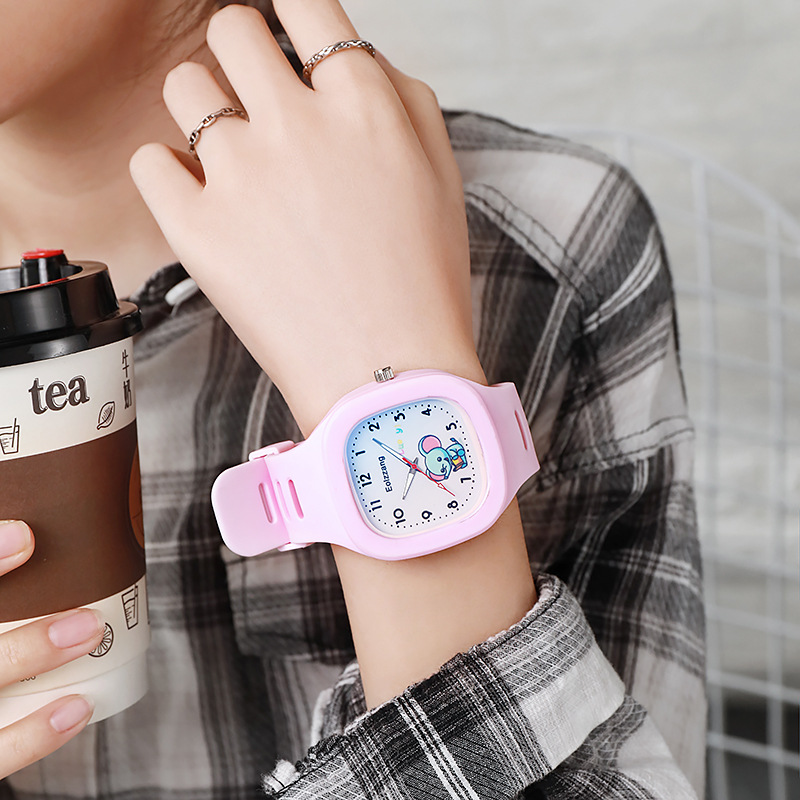 ins cute silicone popular watch trendy luminous sports student square quartz strap good-looking watch