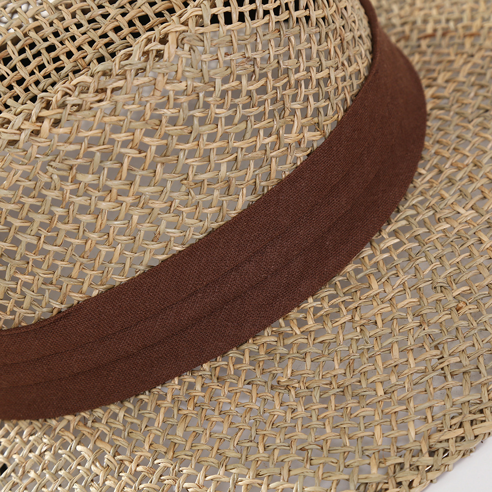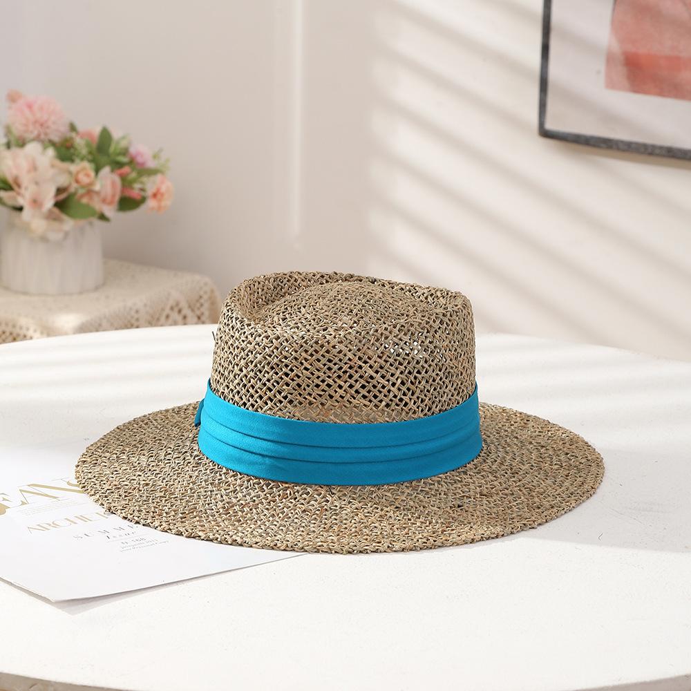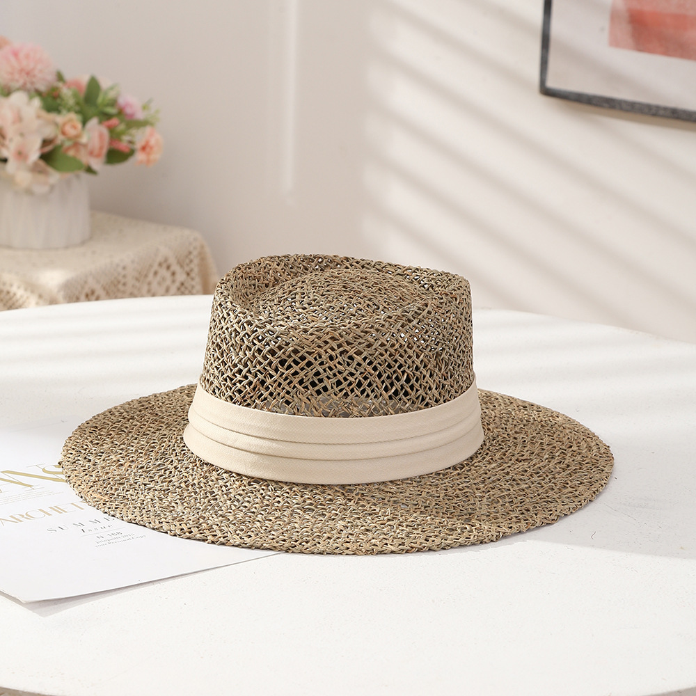 Artistic Retro Flat Top Warp Knitted Straw Hat Summer Beach Travel Style Hat Outdoor Hollow Sun Hat Adult