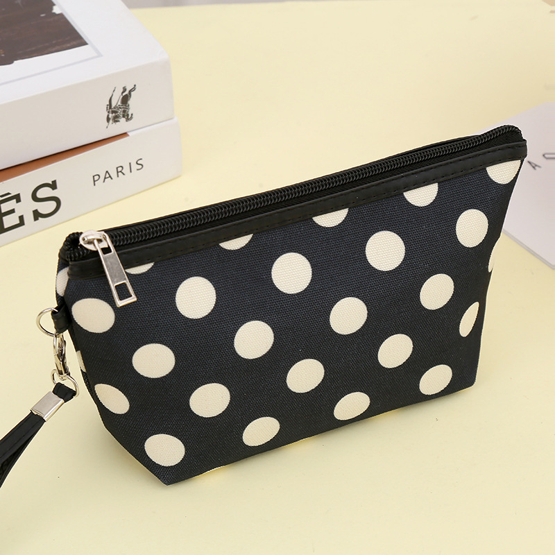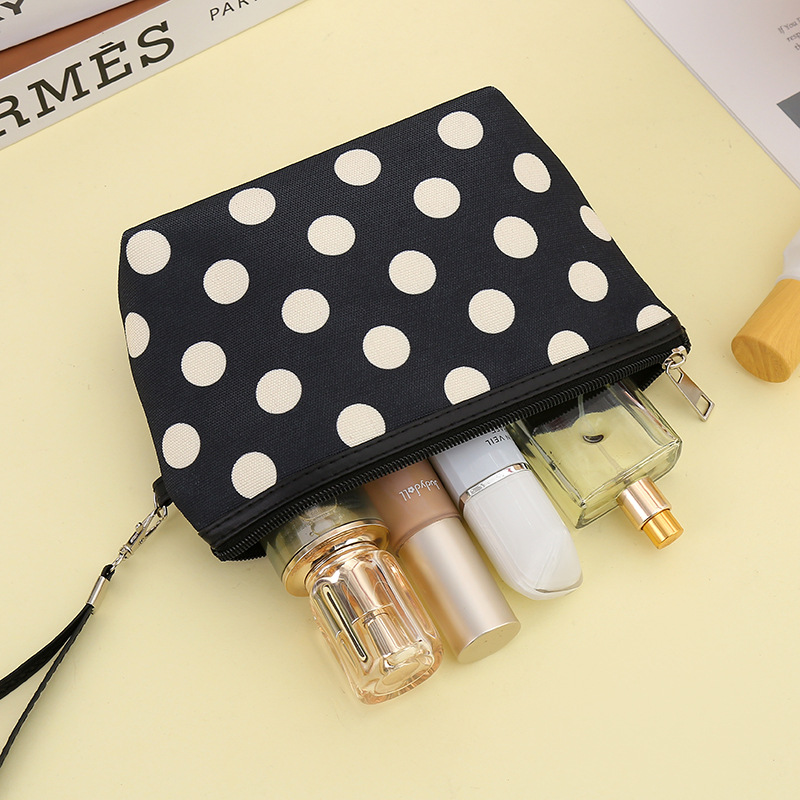 Cross-Border Hot Sale Classic Polka Dot Fabric Cosmetic Bag Waterproof Portable Zipper Wash Bag Simple Phone Key Case 中文版