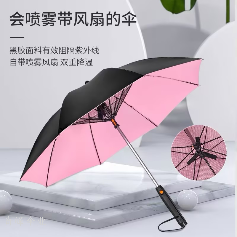 qifeng umbrella water spray fan heat dissipation long handle umbrella cooling artifact usb charging interface 中文版