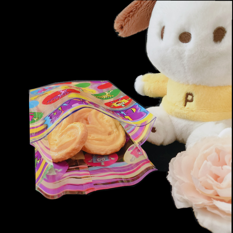 factory customized colorful cartoon pattern birthday gift biscuit nut food packaging bag middle seal tie silk drawstring bag 中文版