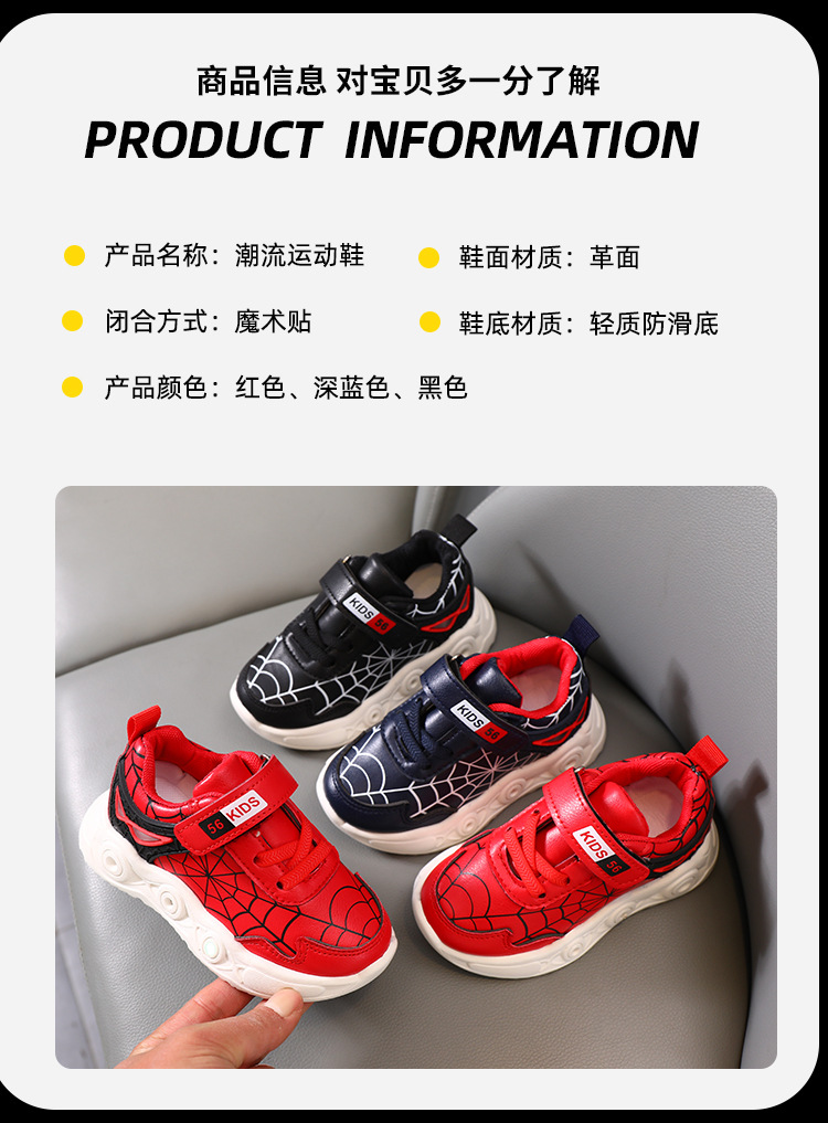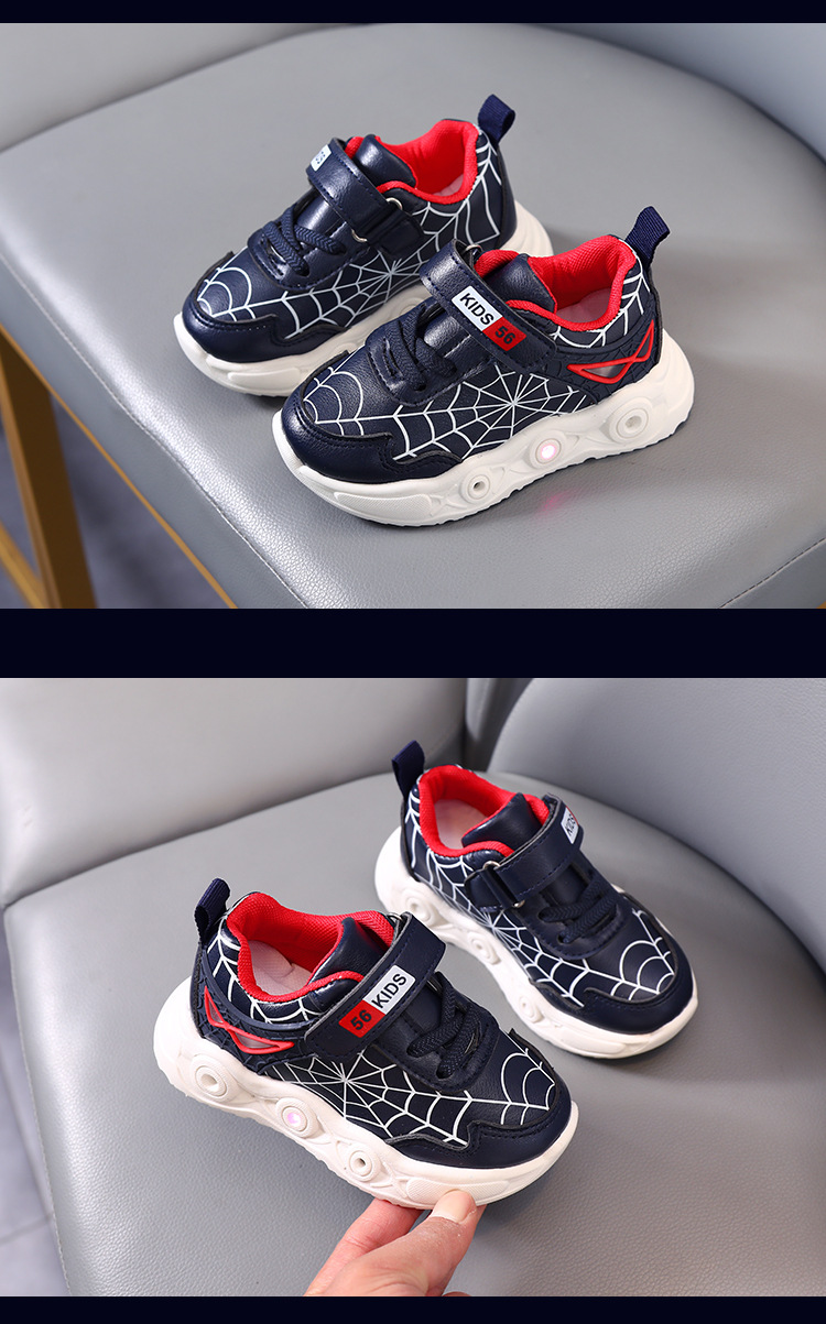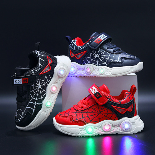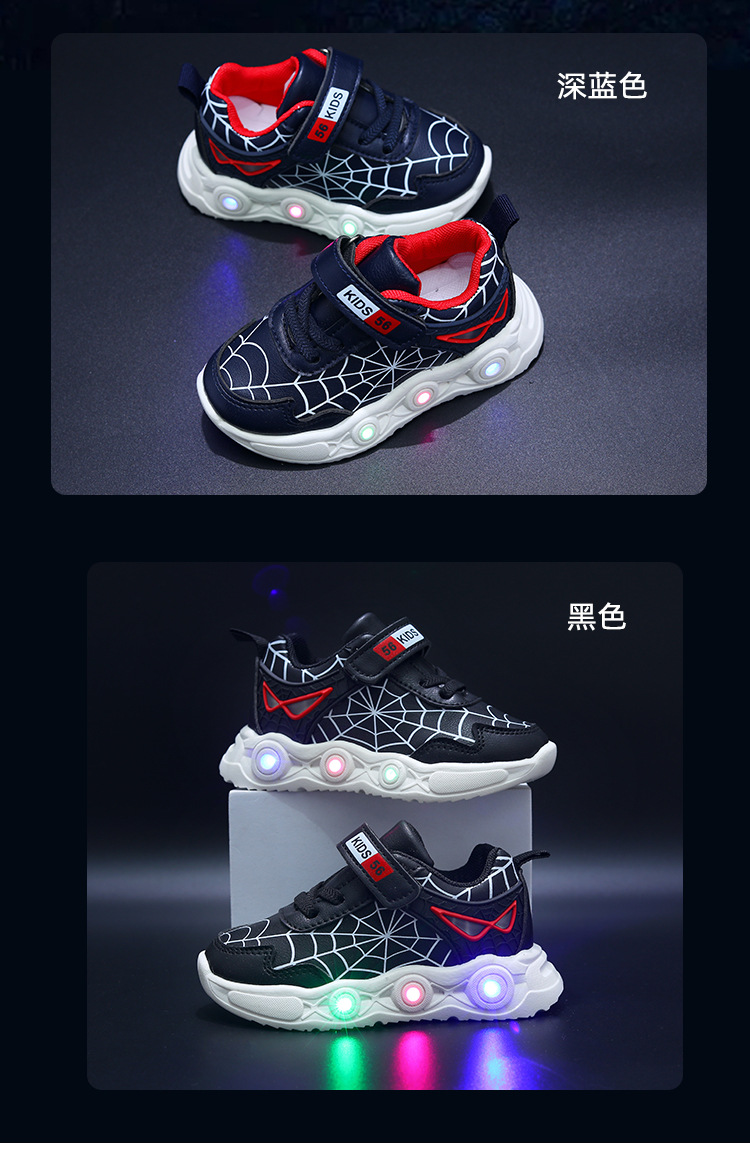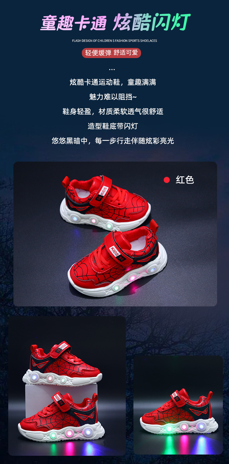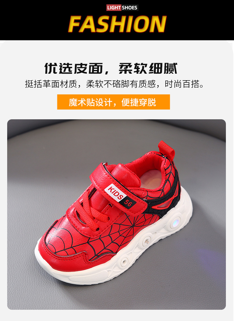 children's cartoon sneakers with light spring and autumn new leather led luminous children's shoes 1-6 years old boys' sports 中文版