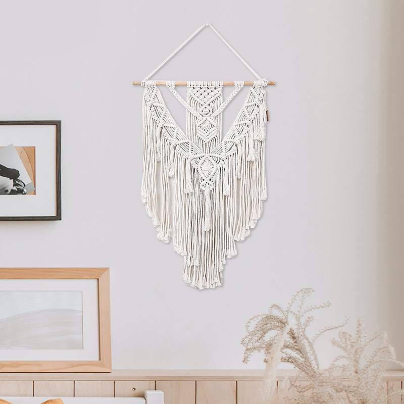 Factory Direct Supply Bohemian Hand-Woven Tapestry Cotton Tead Woven Baground Wall Living Room Triangle Tassel Tapestry