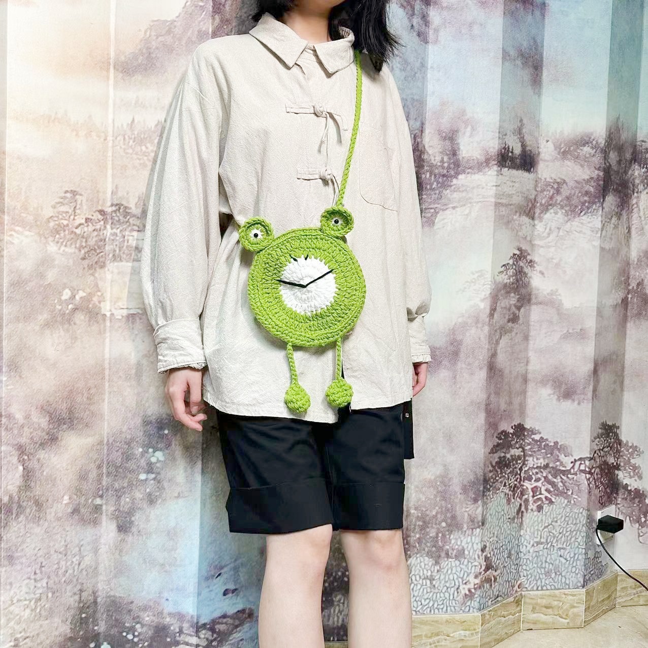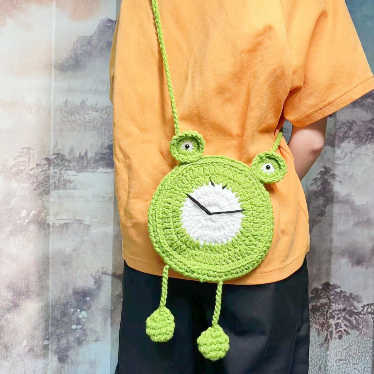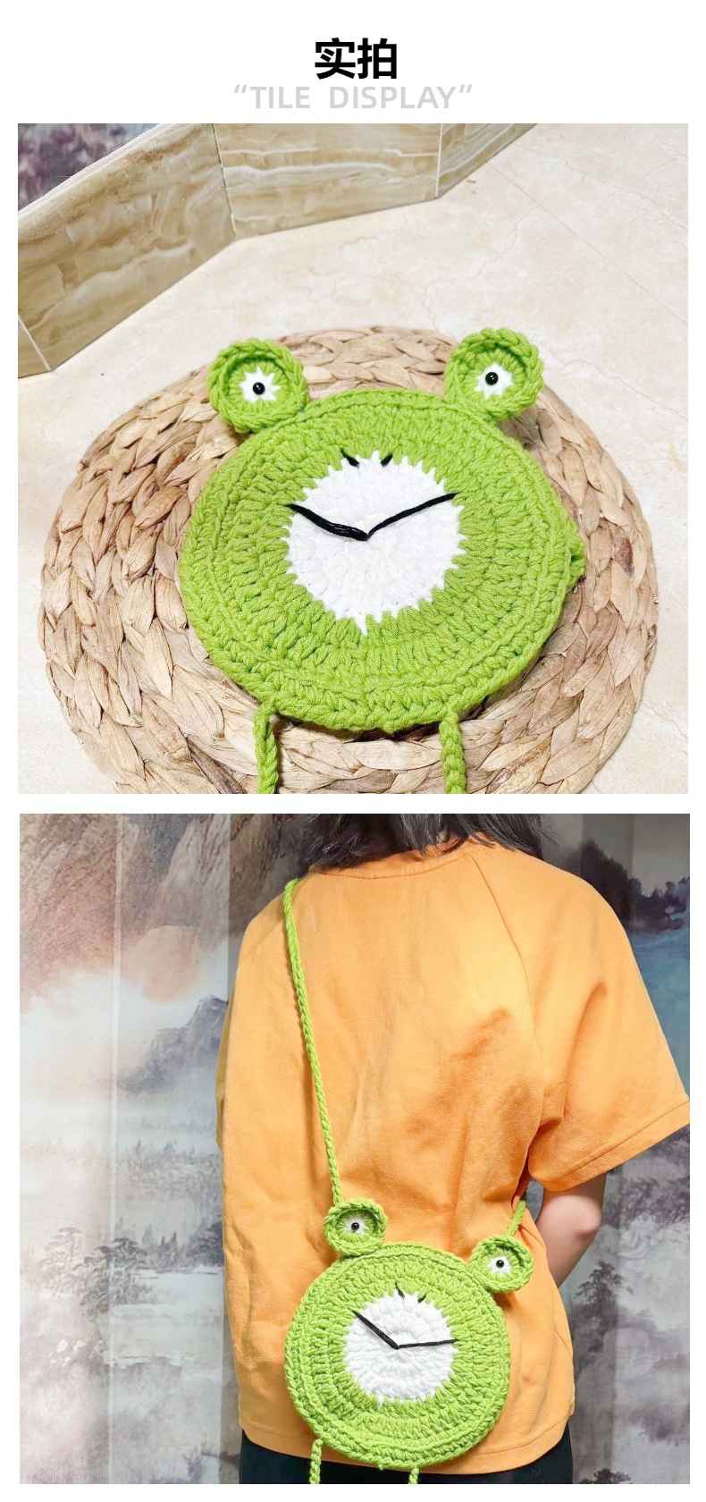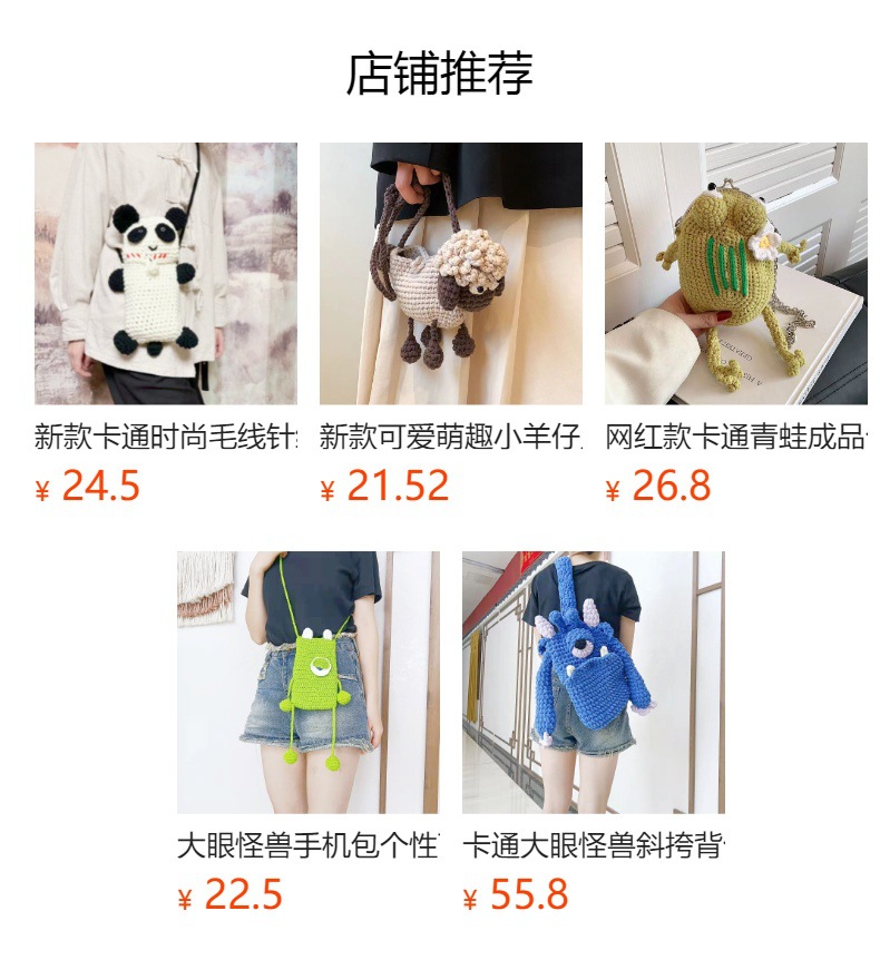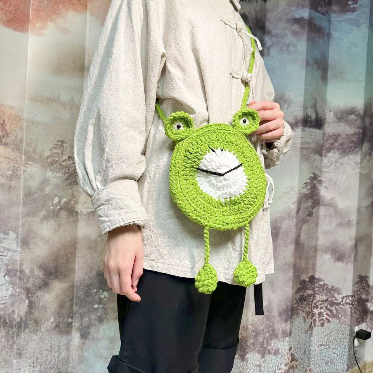 New Handmade Woven Bag Cute Cartoon Frog-Shaped Wallet Wool Crochet Children's Bags Shoulder Messenger Bag Finished Product