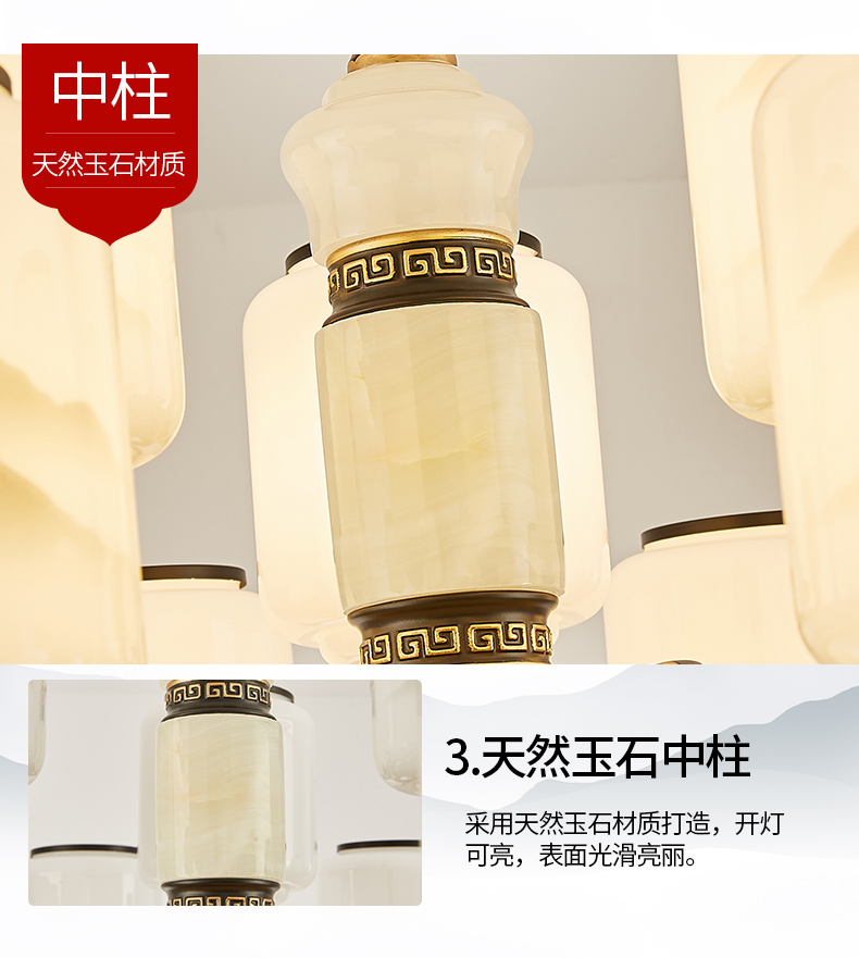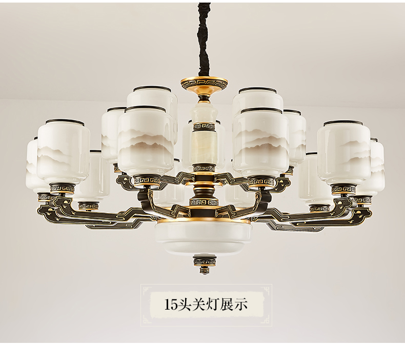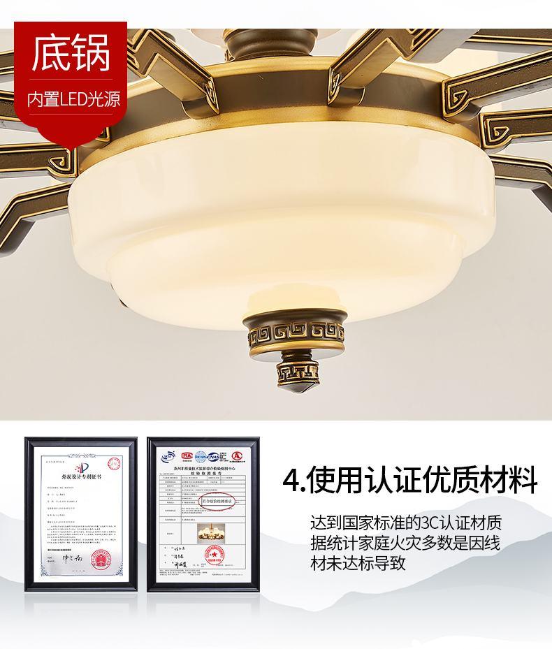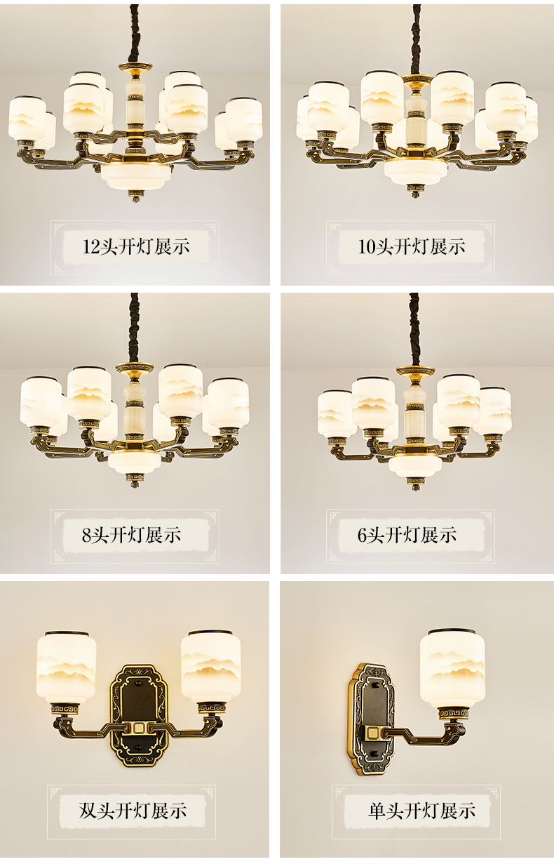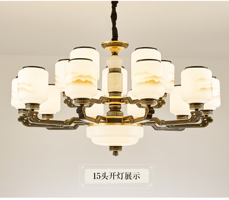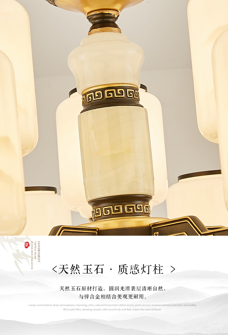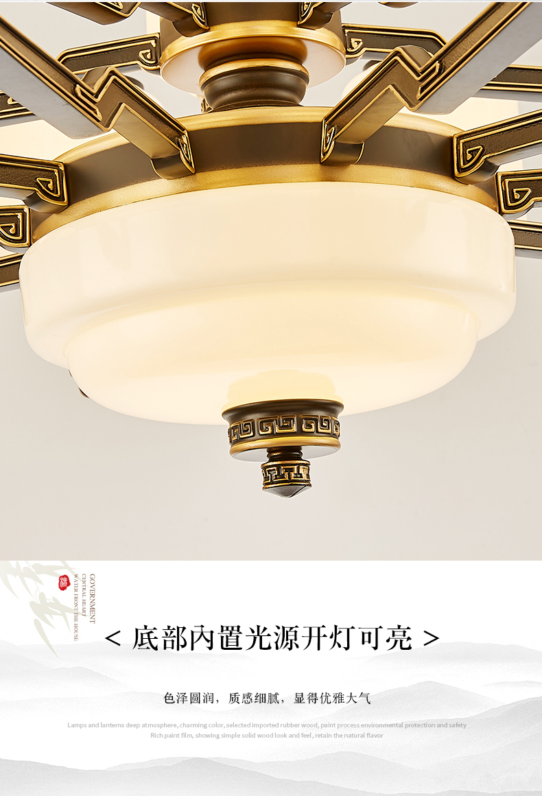 10-head fan lamp [jade center column] three-color light source