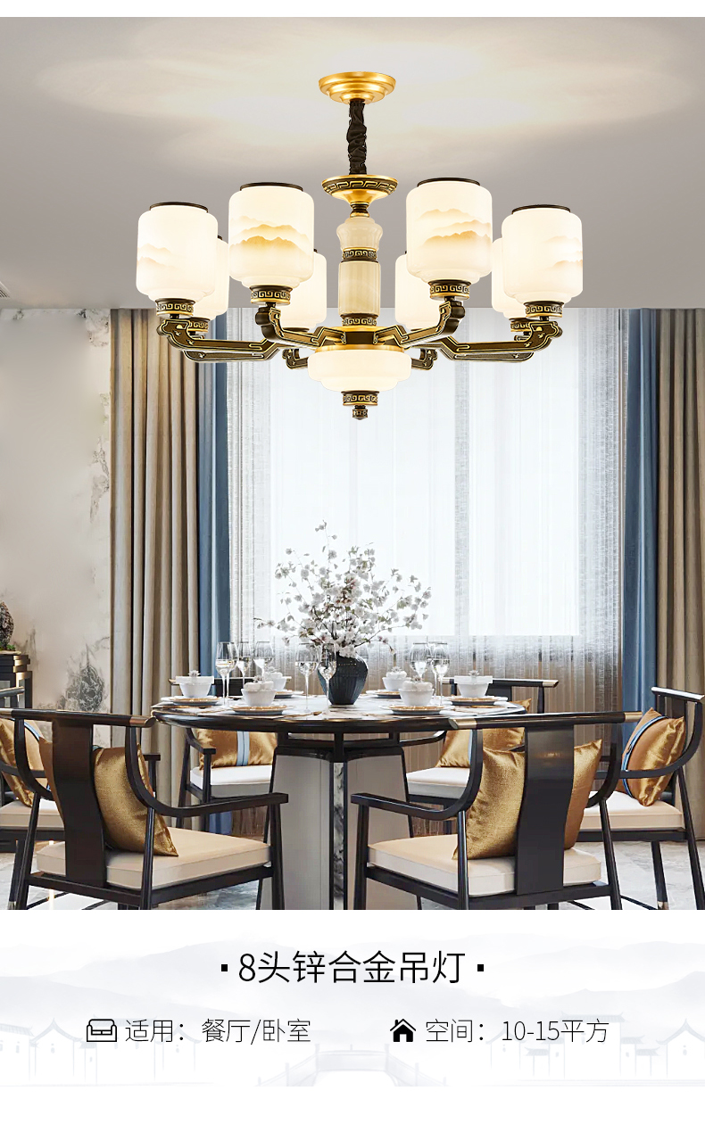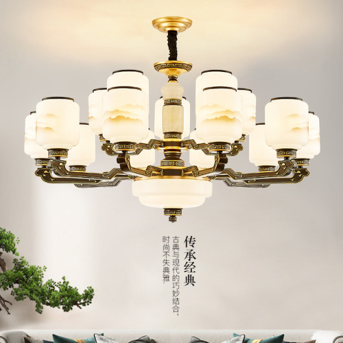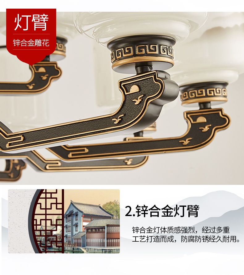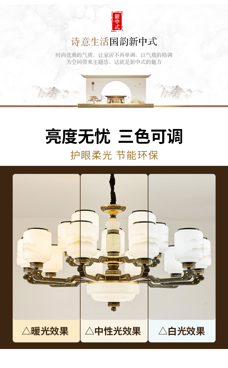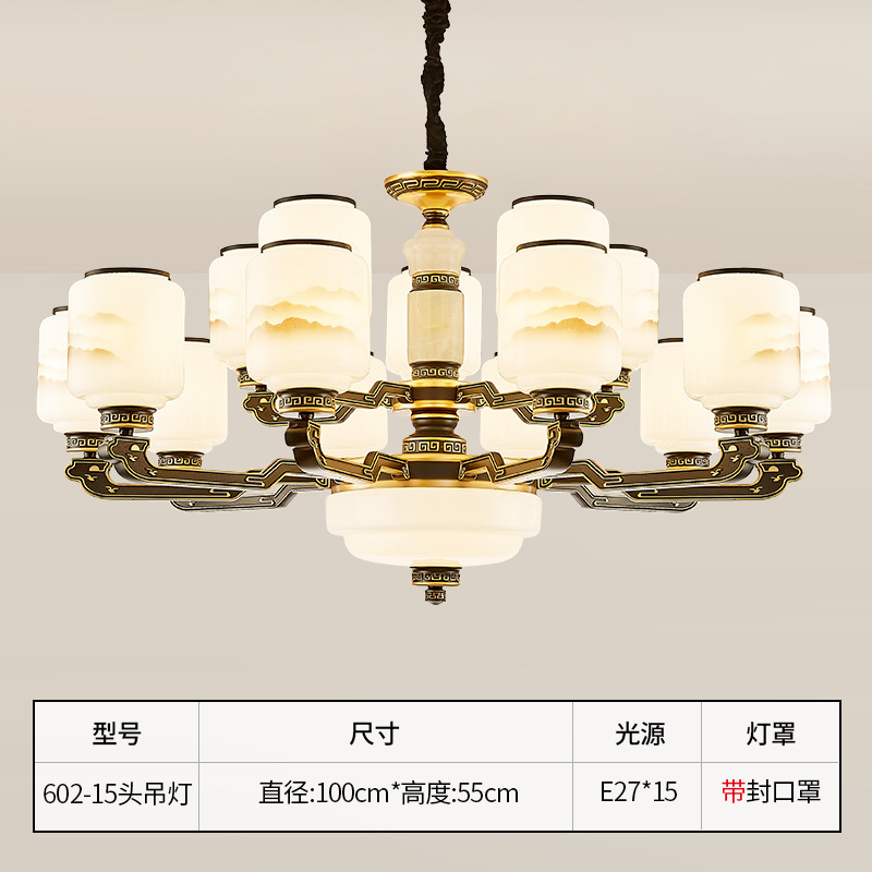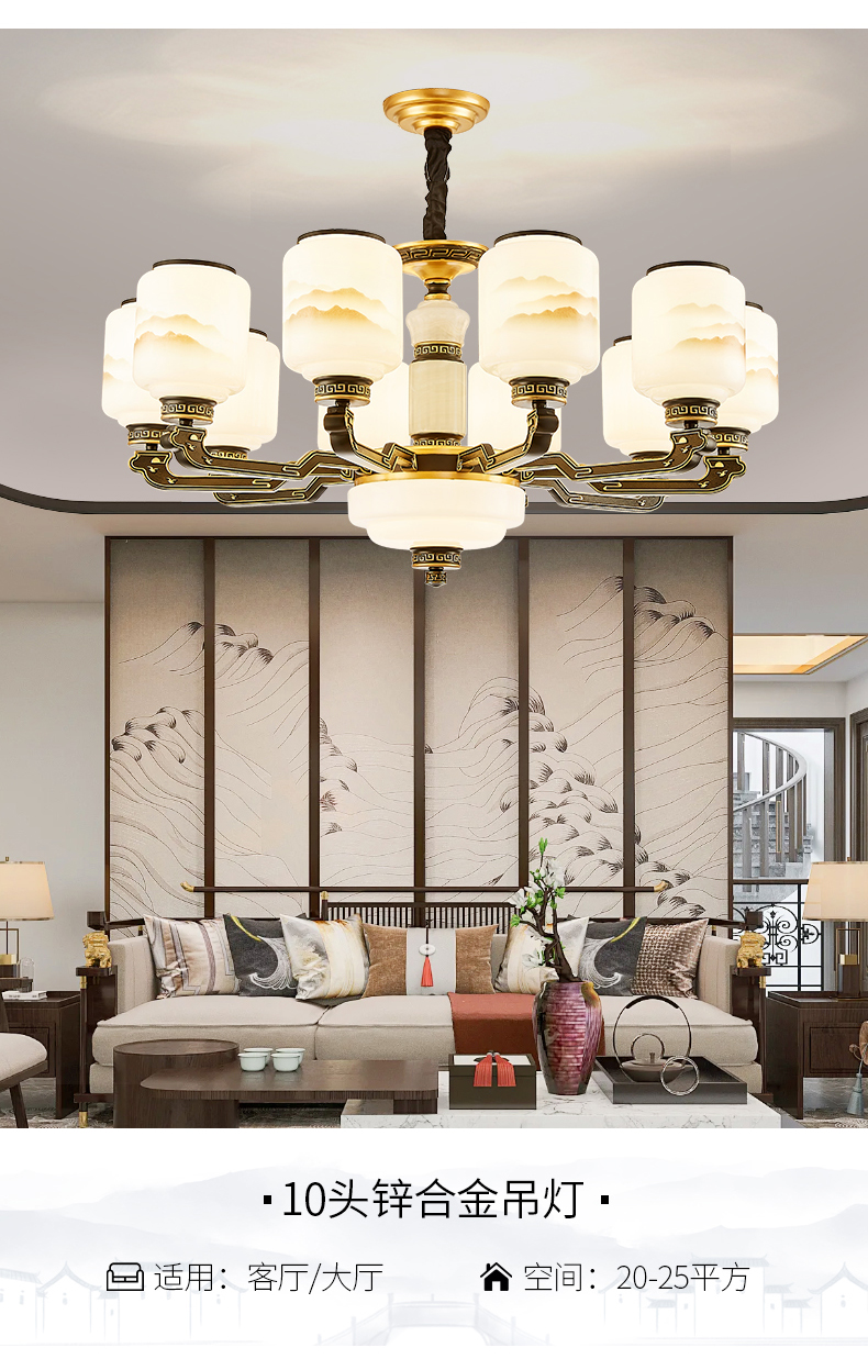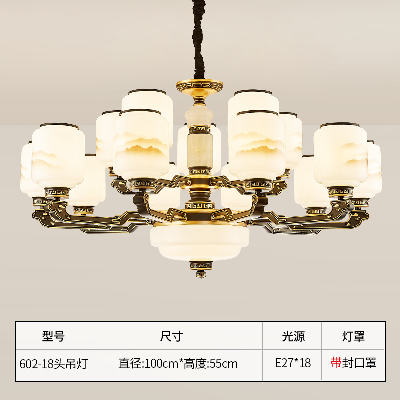 10-head fan lamp [jade center column] three-color light source